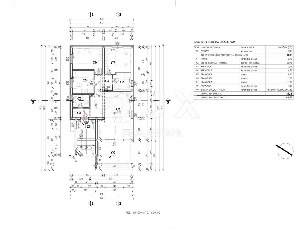 This is an apartment located on the second floor of a new building, with a total usable living area of 84.18 m2. The apartment consists of an entrance hall with a designated space for a wardrobe, which then introduces us to the living area of the apartment designed according to the "open space" system, without partition walls. Here you have the opportunity to spend your time in a comfortable living room, ideal for watching your favorite series or movies, there is also a spacious dining room large enough for the whole family, and a space intended for the kitchen. From the living room there is access to a covered terrace overlooking the sea, ideal for drinking your morning coffee or a late evening glass of your favorite wine.