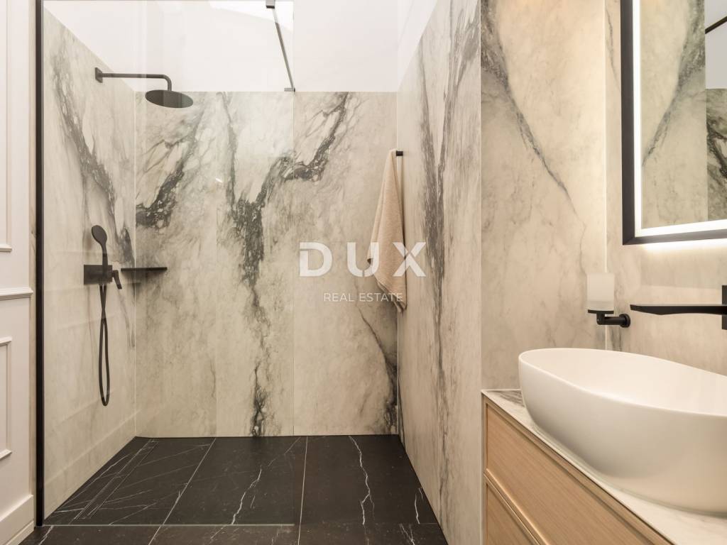 In the very center of Opatija, in a representative Austro-Hungarian building, there is this elegant and completely renovated property of 114 m2. Located on the 1st floor, the apartment consists of a spacious living room, a modern kitchen with a dining room, two bedrooms and two bathrooms. High ceilings, quality materials and plenty of natural light create a sophisticated yet comfortable atmosphere.