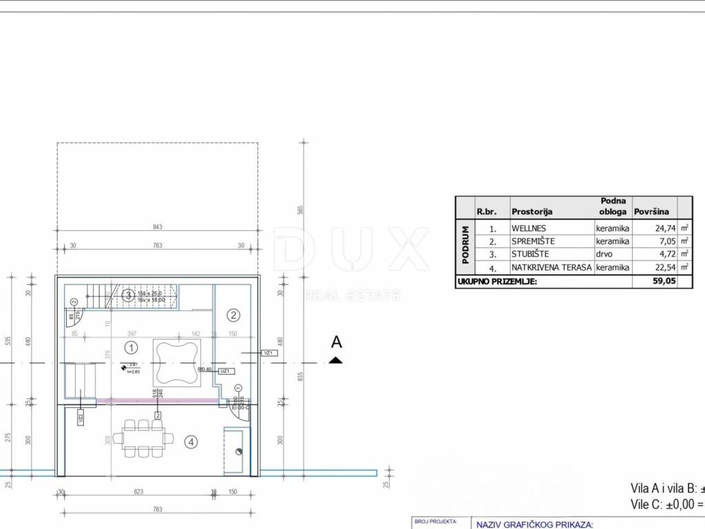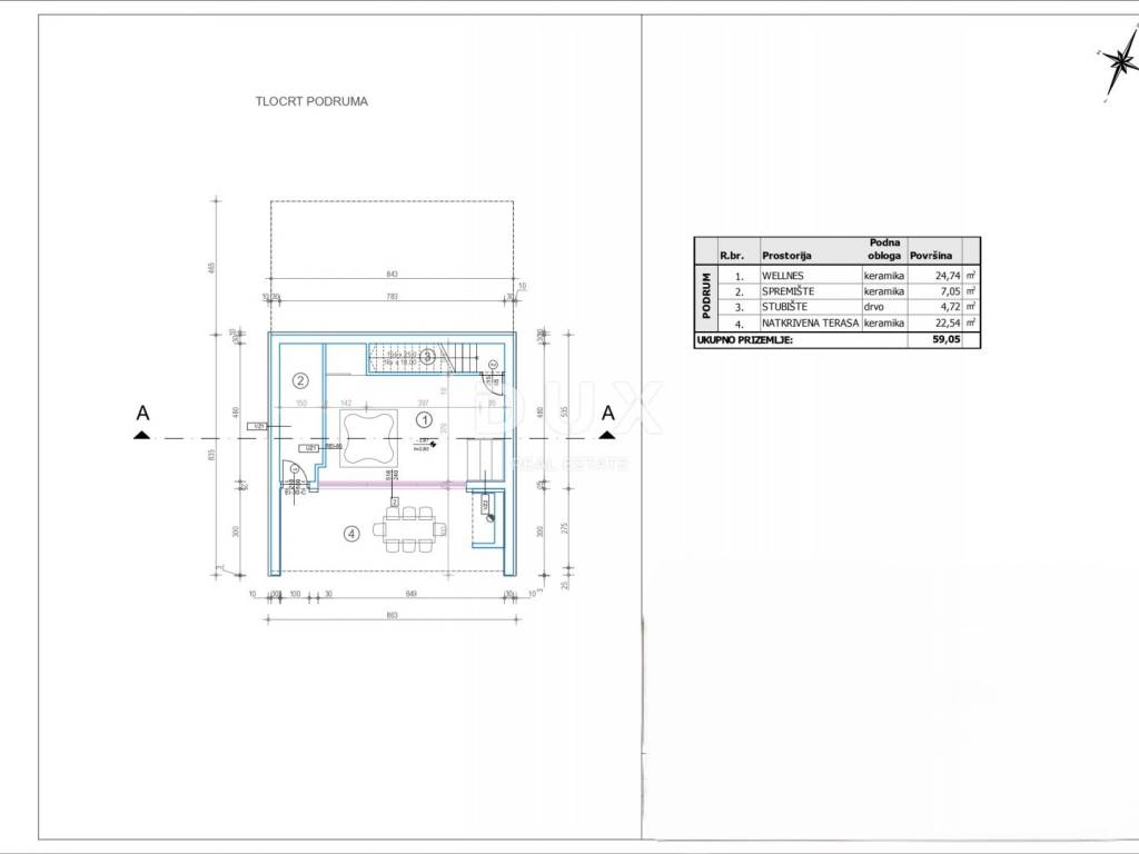 podrum (Wellness Zona): Wellness, spremište, stubište i natkrivena terasa zona za opuštanje.