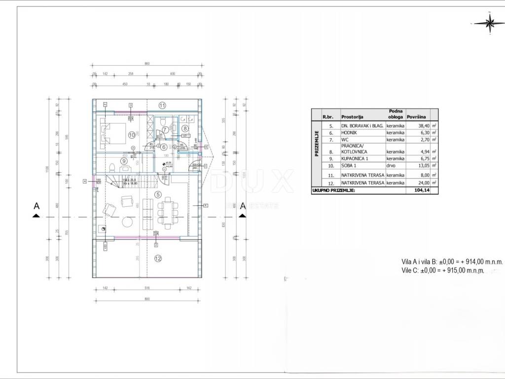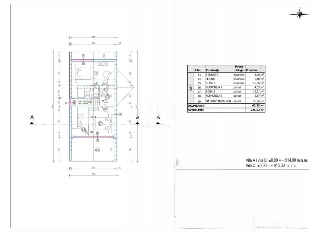 Tri vile (A, B, C) površine su 227 m2, a jedna vila (D) je 178 m2.