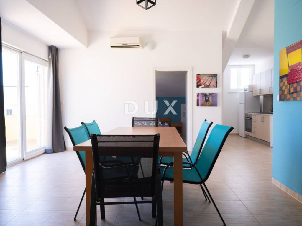 Spacious penthouse in the center of Novalja with a beautiful sea view! Fully furnished penthouse apartment for sale in a quiet street in the heart of Novalja, just a 10-minute walk from the beach and 5 minutes from the supermarket. Such apartments rarely appear on the market - spacious, bright and ready to move in, with the possibility of using it as one large apartment or two separate apartments. MAIN FEATURES: Three bedrooms Two kitchens with dining room and living room Two bathrooms Storage room Two spacious terraces one with panoramic sea and sunset views, the other with a view of the Velebit mountain range High ceilings and lots of natural light Apartment in excellent condition, fully furnished and ready to move in Two private parking spaces (total 25 m) Apartment area: 95 m + two terraces of 12.33 m each Possibility of using as two apartments each with its own kitchen, bathroom and separate entrance Excellent opportunity for those looking for a comfortable home, family apartment or a secure investment with high return potential. Location: center of Novalja, quiet street close to everything, but away from the noise. Please call us for more information.