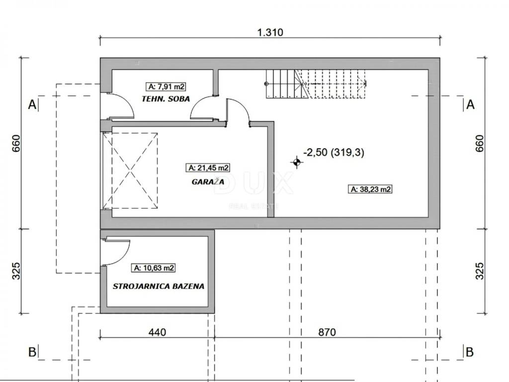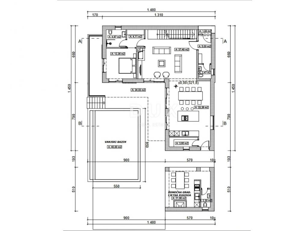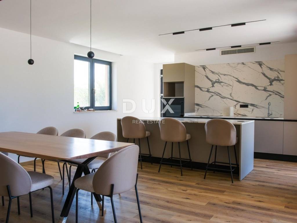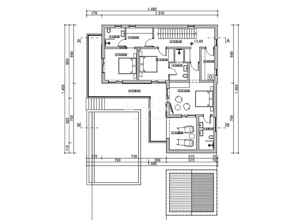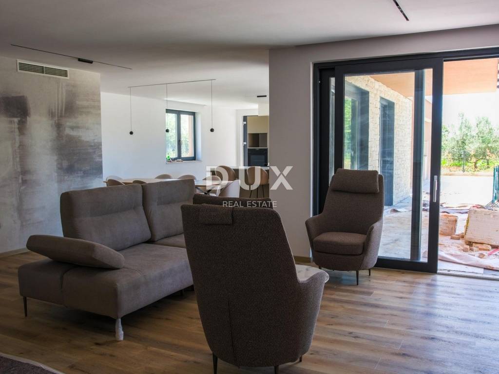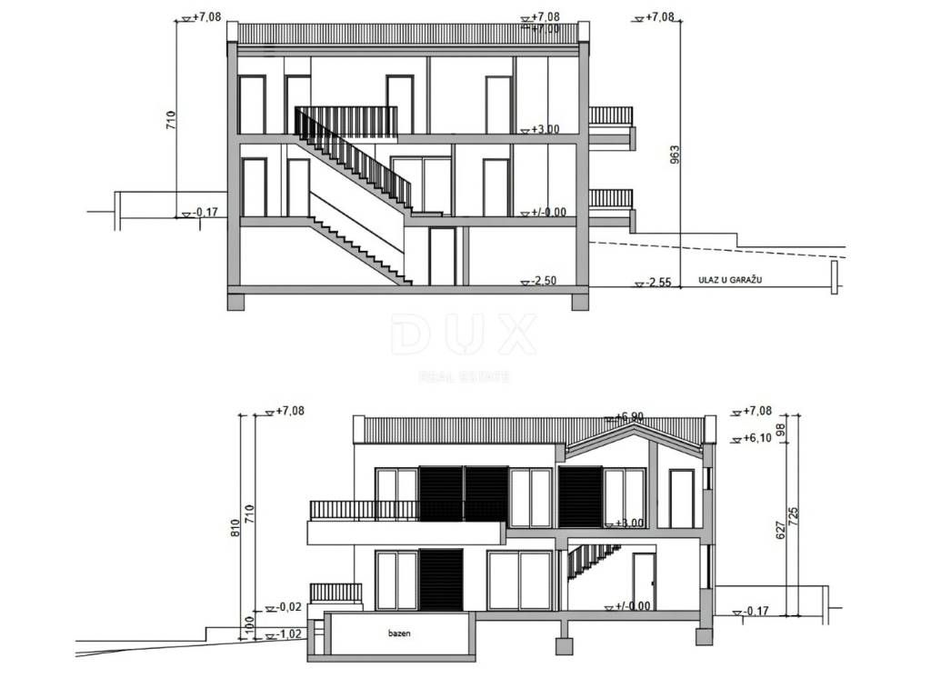 Višnjan is a picturesque and lively town and municipality in the western part of Istria. The municipality of Višnjan has 56 settlements and is located in the area between the Mirna River in the north and the Lim Channel in the south. Romantic Višnjan is situated on a gentle hill of 244 m above sea level surrounded by meadows, arable land and forests of holm oak and white hornbeam. Today, Višnjan is best known for its unique observatory, which is one of the twelve most productive observatories in the world of all time in terms of the number of asteroids discovered. In the idyllic landscape around Višnjan, a house with a swimming pool on the edge of the village is for sale. The microlocation offers an authentic experience of a small Istrian town, intimacy and relief from every hectic effort and noise, while at the same time being close enough to dynamic Istrian cities with a range of facilities. A comfortable house of timeless charm and architecture, partly clad in stone, blends in with the settlement and landscape in terms of form and color, and the quality of construction guarantees long-term satisfaction and quality of living. It is designed as a single residential unit that combines elegance, functionality and comfort across three floors. The basement consists of a garage, a multi-purpose room intended as a social area, a billiard room, a gym or wellness area, technical rooms and a swimming pool engine room. The ground floor consists of a kitchen with a dining room, a living room, a bedroom with a private bathroom and a guest toilet. The first floor consists of a hallway, a storage room and three bedrooms with private bathrooms, all of which have access to a balcony. The yard is ambientally and horticulturally decorated and fenced, and the perfect harmony is rounded off by additional facilities such as an auxiliary building containing a summer kitchen with a toilet and a swimming pool with a sunbathing area. The excellent location and spatial organization of the interior and exterior of this property provide an opportunity for a comfortable family life or an investment in a tourist rental business. The seller of the property in question is a legal entity and VAT is included in the stated price.