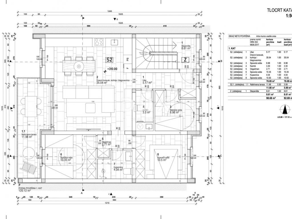 The most attractive and picturesque Istrian town of Rovinj, with its old town centre under UNESCO protection, is an eternal inspiration for romantics and artists and one of the most developed tourist destinations in Croatia. It is located on the western coast of Istria and is adorned with a very indented archipelago with as many as 14 islets and 6 cliffs along 67 kilometers of coastline that is a protected natural heritage. The beautiful indented coastline, specific mild Mediterranean microclimate, excellent gastronomic offer, year-round cultural events and friendly and kind hosts make this place magical. In the vicinity of the town of Rovinj, a comfortable apartment in a new building is for sale. The semi-detached family building of timeless design with two residential units fits into the settlement and landscape in terms of form and color and extends through the ground floor and first floor. The construction uses durable and reliable materials that guarantee long-term satisfaction and safety of residence, and the space planning of each floor has been carried out in detail, resulting in a high-quality layout of the rooms, which guarantees full utilization of the space. The subject of sale is an apartment located on the first floor of the building. The net area with calculated coefficients is 84.08 m, while the net area without the calculated coefficient is 90.07 m and includes a residential area of 78.09 m and a covered terrace of 11.98 m. It consists of three bedrooms, a bathroom, a guest toilet, a hallway and an open-concept space that unites the living room, dining room and kitchen with access to a covered terrace. The apartment has one parking space. This apartment is an ideal opportunity for a pleasant family life as well as for an investment for the purpose of tourist rental. The planned completion date and handover of the property is scheduled for early 2027. The stated price of the property refers to the final level of completion without furniture, which allows for final decoration according to your own wishes and preferences. The seller of the property in question is a legal entity.