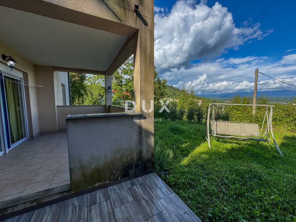 Only in our offer do we present an excellent family apartment near Matulji and Opatija. This is a top-quality property - an apartment on the ground floor of a newer house with a garden for use. The apartment consists of a hallway, a bathroom with a window, two bedrooms and a spacious living room with a kitchen and dining room connected to a covered terrace. The terrace leads to a garden of 150 m, which is for use. The garden is completely fenced and provides complete privacy. The position of the house is such that it guarantees peace, quiet and privacy without neighbors. Access from the parking lot to the house is very practical, which increases the quality of this property. The house was built in 2014, and you need to buy your own furniture inside to make this property perfect for the future owner. The joinery is in excellent condition, has mosquito nets and blinds, there is space in the apartment for installing a stove and the whole house functions together on a shared stove for which the apartment has its own central heating (radiators in the rooms). The abundance of windows guarantees daylight in the property, and the garden is a truly fantastic advantage where you can enjoy family gatherings or relaxing. The house is located in a quiet street with no active traffic - the drive to the shop takes only one minute while the drive to the center of Matulji takes 4 minutes. It takes only 6 minutes to get to Opatija by car. Excellent microlocation from which you can easily get to Rijeka and the bypass. A superb opportunity for a domestic property with only two neighbors!! To arrange a visit to the property, call the agent with confidence - consultation in German possible.