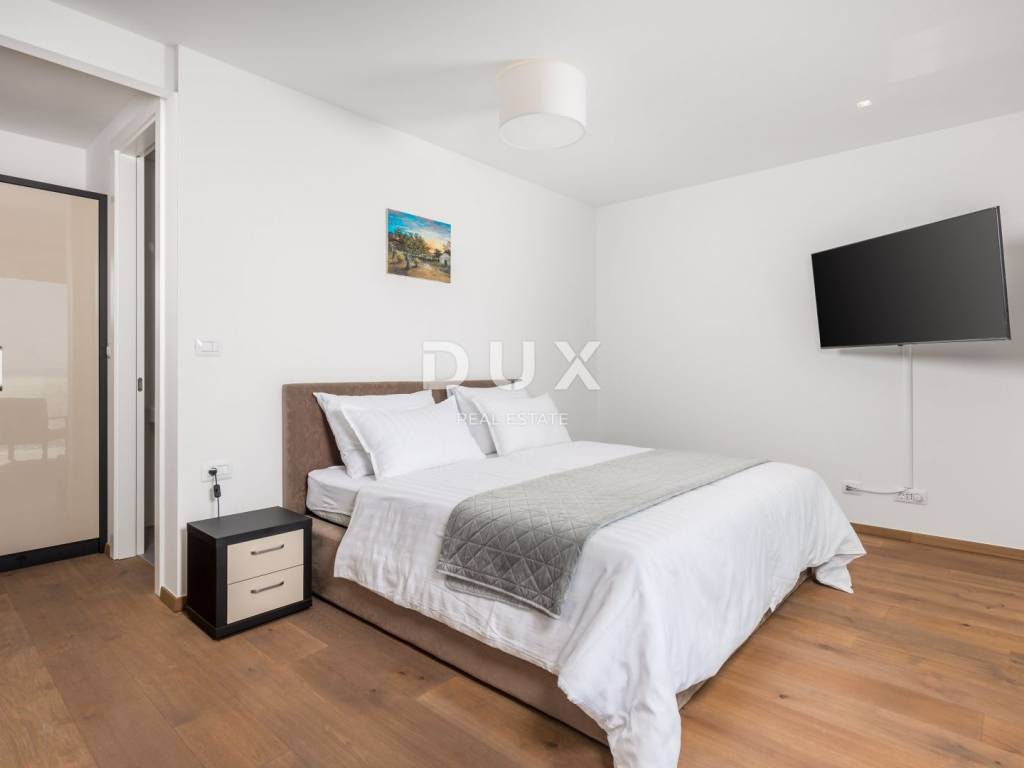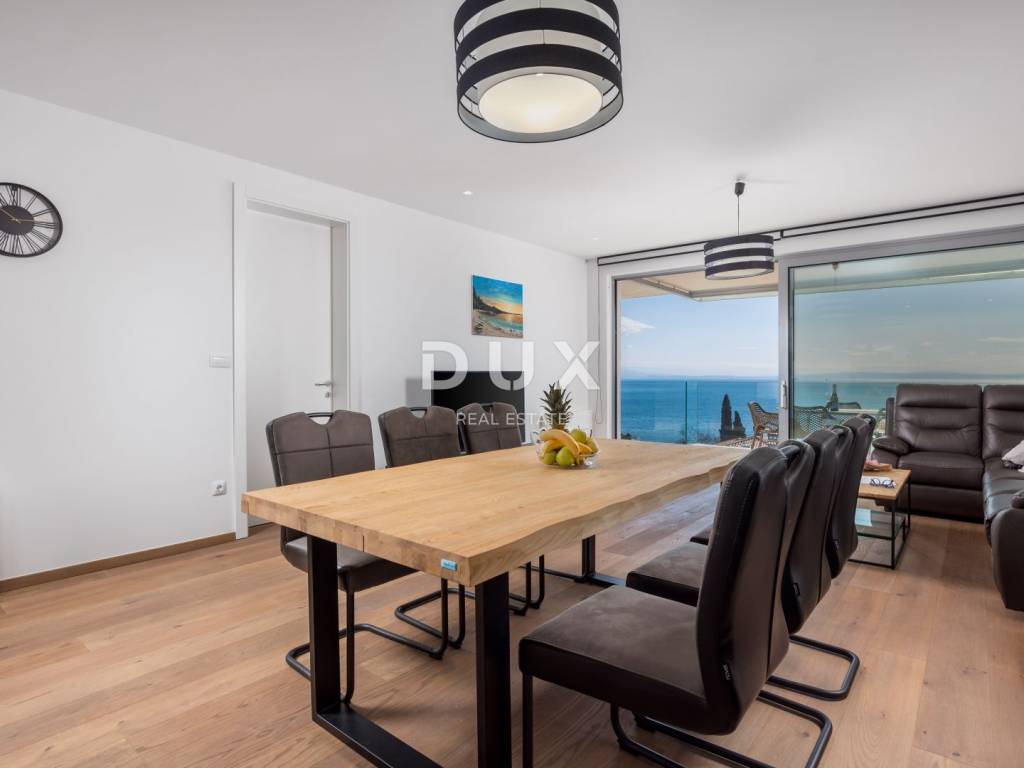 We offer a modern apartment located in the heart of Opatija, the pearl of the Adriatic Sea, which offers a beautiful panoramic view of the Kvarner Bay. This 135 m apartment is a perfect choice for the winter period, and is located in a peaceful and quiet neighborhood, just a few minutes walk from the center and beaches. The apartment offers 3 bedrooms, two fully equipped bathrooms (en suite), a large living room with kitchen and dining area and a 20m2 south-facing terrace with a beautiful sea view. There is also a shared swimming pool (in operation from May 1st), while the sun deck is available all year round - an ideal place to relax in the sun even in the winter months. The apartment's location in a quiet street above the center of Opatija allows quick access to everything the city has to offer - the beach and center are only a 13-minute walk downhill, while the drive takes only 3 minutes. In addition to Opatija and the surrounding beaches, in just an hour's drive you can explore the historic towns of Istria such as Motovun and Rovinj, the island of Krk or the Plitvice Lakes National Park. This spacious and bright apartment is the perfect choice for a winter stay on the Opatija Riviera - a combination of luxury, comfort and a unique view of the Adriatic. Monthly rent: 3,000 + utilities. To arrange a property visit, call a trusted agent - consultation in German is possible.
