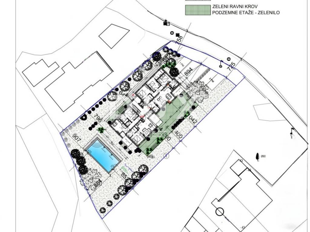 Zemljište ima shodovanu je lokacijsku dozvolu za objekt od 1131m2 (BRP) + bazen.