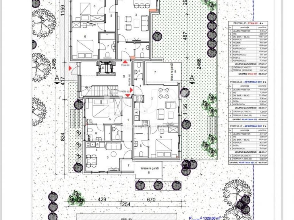-PRIZEMLJE- ukupne površine 250m2 3 stana (dva stana 1S+DB i jedan stan 2S+DB)