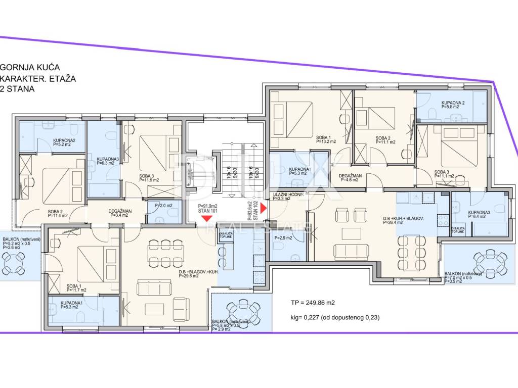 - 2.KAT ukupne površine 250m2 1 penthouse (3S+DB)