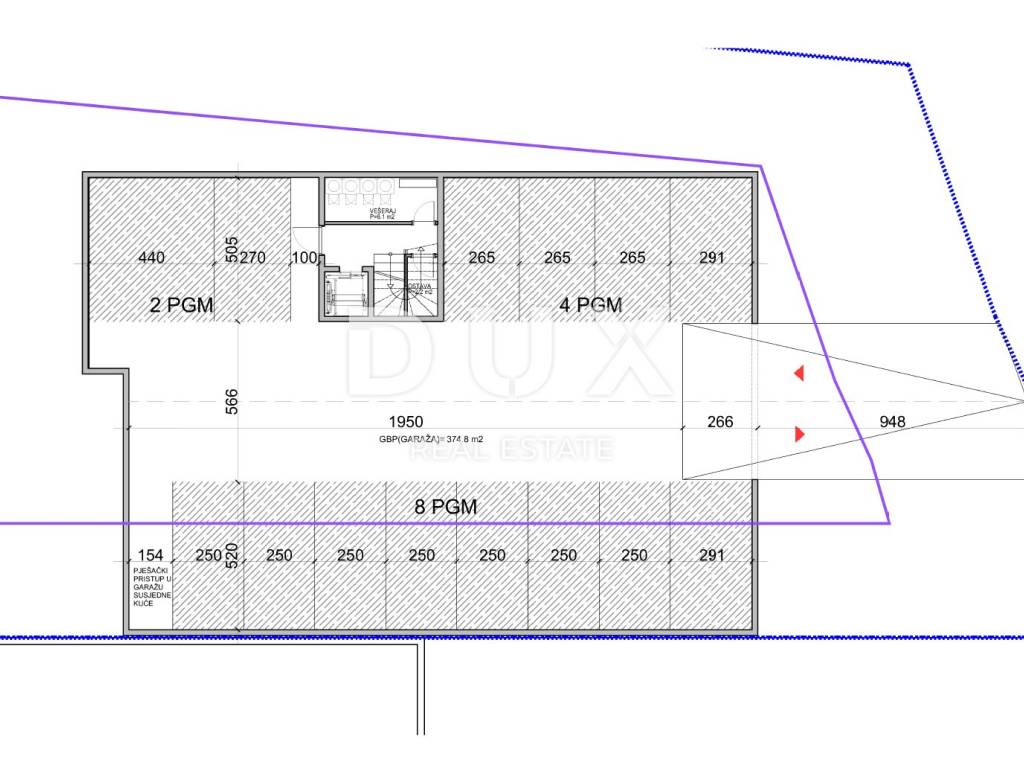 -PODRUM ukupne površine 381m2 garažni prostor s parking mjestima + prostor za spremnike + wellnes (ili neki drugi sadržaj po želji potencijalnog kupca)