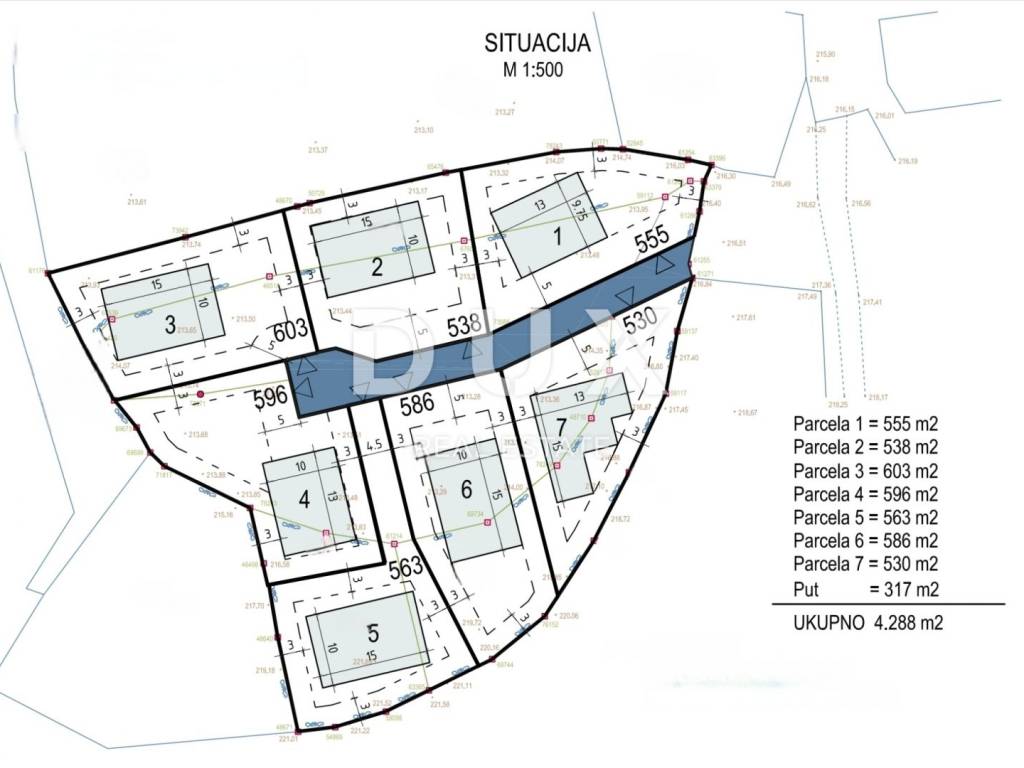 Zemljište je je podijeljeno na 7 parcela: