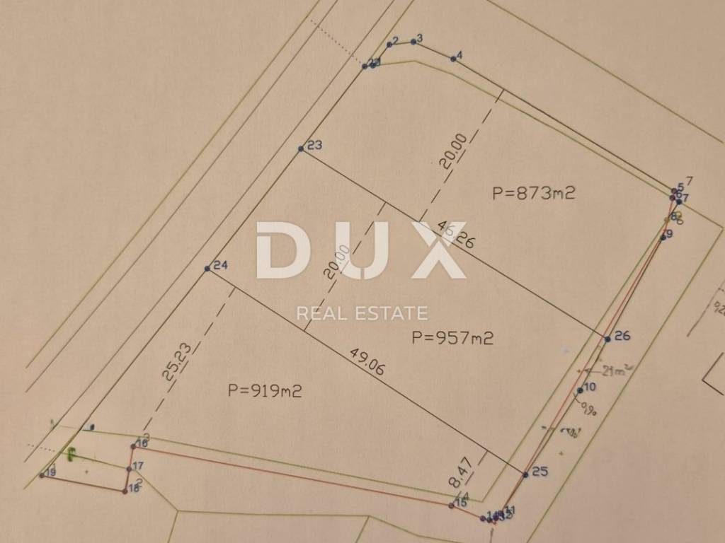 Velika parcela isparcelirana je na tri manje čestice P1 površine 919 m2, P2 površine 957 m2 i P3 površine 873 m2.