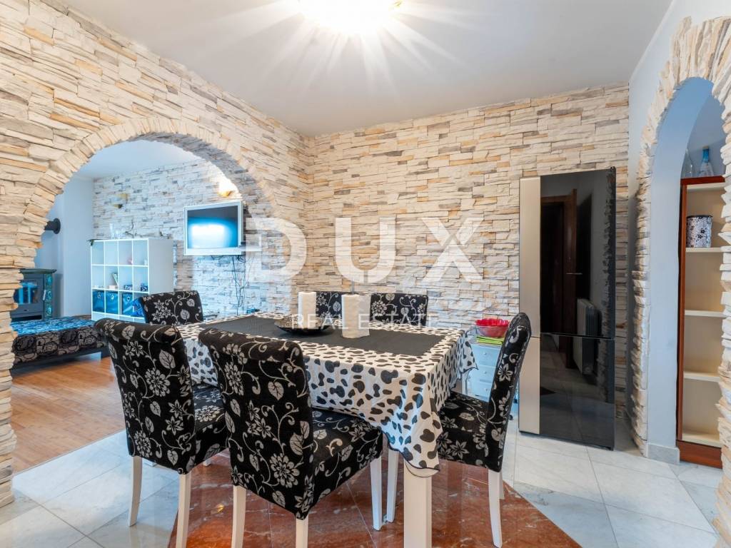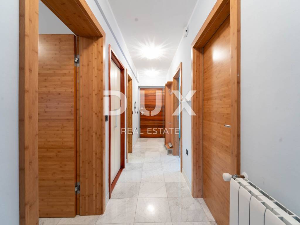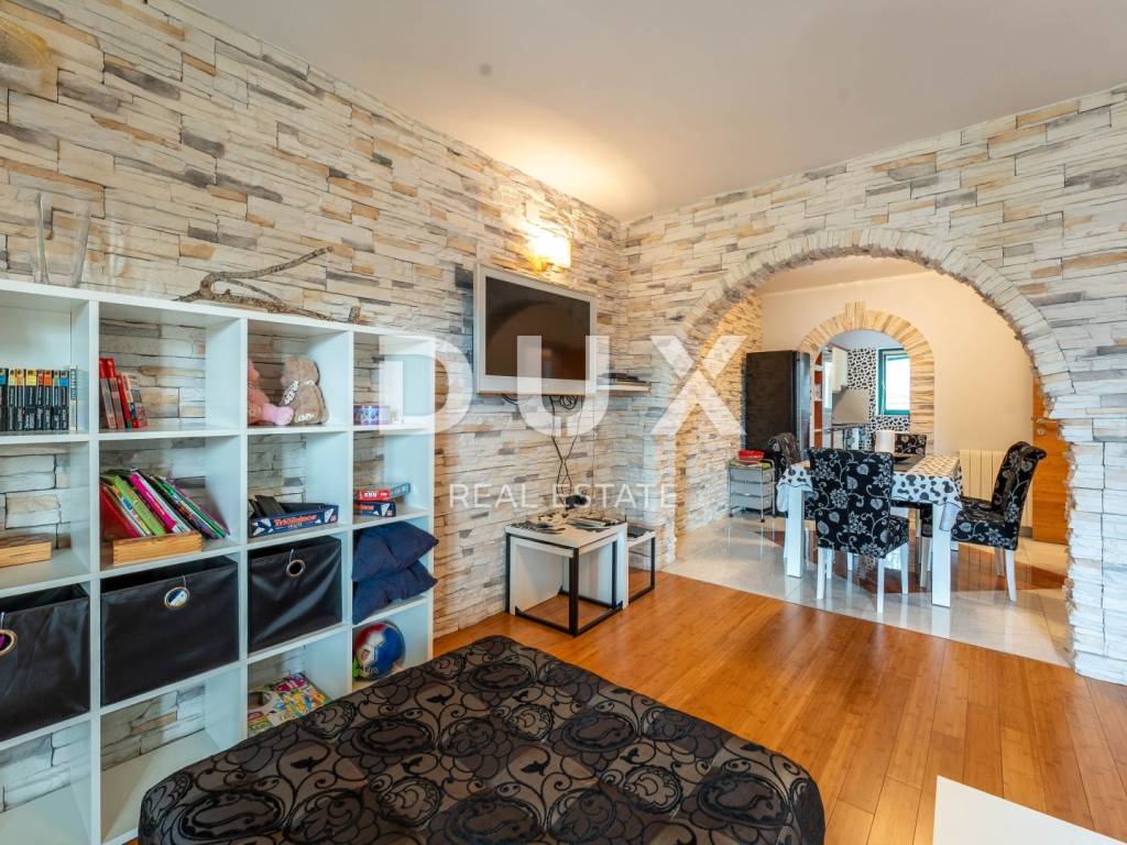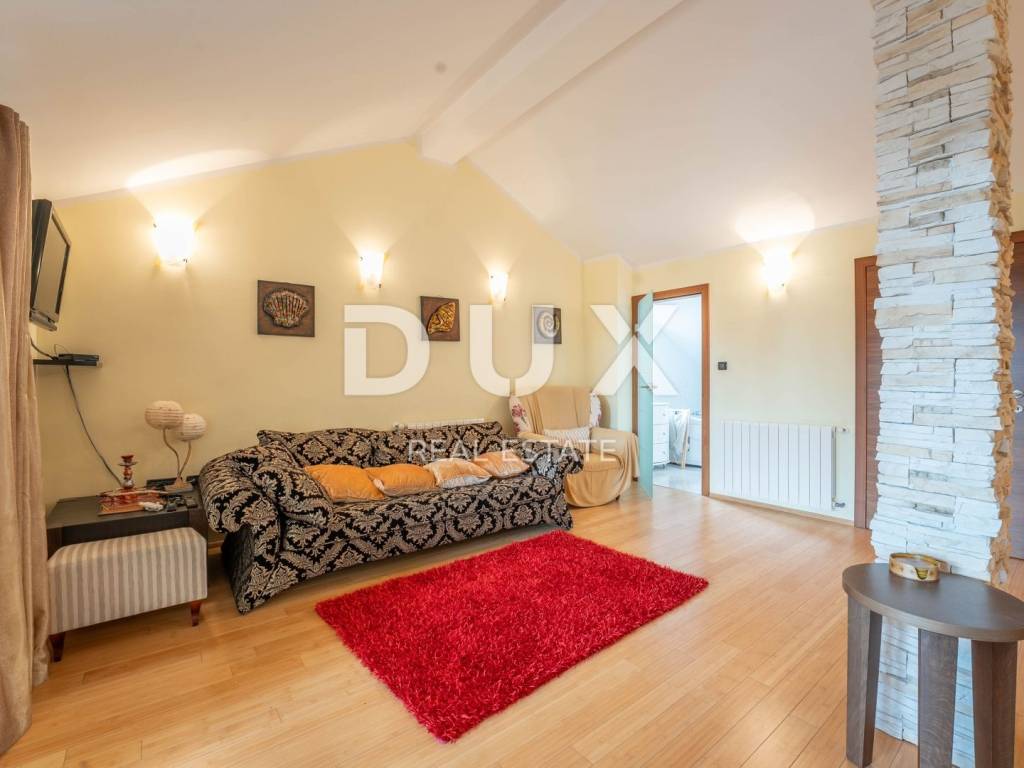 We present to you this semi-detached villa in the center of Opatija located in the peaceful surroundings of Opatija Villas, just a two-minute walk from the sea. The villa is architecturally impressive and extends over four floors, providing an excellent layout for comfortable family life and relaxation. Basement: In the basement there is a small, charming studio apartment of 23m2 consisting of a bathroom, a bedroom and a small kitchenette with a dining area. In front of the entrance to the apartment there is a large terrace for relaxation. Ground floor: On the ground floor there is a beautiful two-bedroom apartment of 83m2 consisting of an open space area that combines a kitchen with a dining area and a living room with a tiled stove, two bedrooms and a bathroom. The southern orientation of the living room ensures plenty of natural light and an unobstructed view of the sea. The living room opens onto a terrace, and one room onto a balcony. 1st Floor: On the first floor there is a beautiful two-storey apartment of 155m2. The lower floor consists of an open space area that combines a kitchen with a dining room and a living room with a beautiful fireplace, a bathroom with a hydromassage shower and two bedrooms. On the upper floor there are two bedrooms ideal for guests or children and a bathroom with a bathtub. The southern orientation of the living room on the ground floor and on the first floor ensures plenty of natural light and an unobstructed view of the sea. The living room on both floors opens onto a large terrace with a stunning view of the sea. The entire villa has electric central heating and is air-conditioned in the bedrooms and living room, providing maximum comfort throughout the year. The spacious and fenced garden includes a private pedestrian and private entrance for parking for two vehicles and a space for socializing with a large barbecue. This villa offers the perfect balance between privacy and comfort, in a quiet environment away from the noise of the city, but close to all necessary amenities and the beautiful Adriatic Sea.