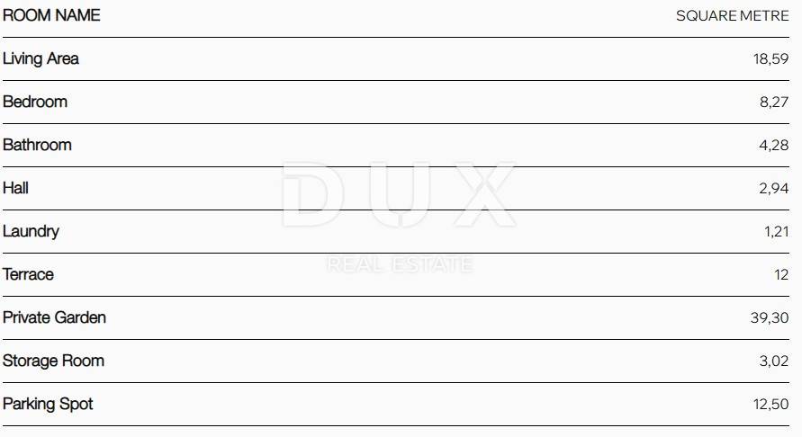 For sale are apartments in two modern buildings building A and building B located in one of the most attractive and peaceful locations on the island of Vir, just a few steps from the most famous Jadro beach. Building A is located in the first row to the sea, only 14 meters from the coast, while building B is located in the second row, about 30 meters from the sea. Jadro beach, with numerous amenities and crystal clear sea, is less than 100 meters away. The entire environment exudes peace and greenery with palm trees, Mediterranean trees and landscaped gardens of neighboring houses. Nearby are also restaurants, shops and all the necessary amenities for a pleasant stay throughout the year. We offer apartment BS2 on the ground floor of building B an elegant and functional apartment consisting of a bedroom, bathroom, laundry room, storage room, living room with kitchen and dining room, covered terrace with a beautiful sea view and a private garden ideal for relaxation. The apartment also comes with one parking space. The apartment offers the perfect combination of comfort, luxury and proximity to the sea, and every detail has been carefully designed to satisfy even the most demanding customers. The buildings are built to the highest standards - reinforced concrete foundations and slabs, load-bearing walls made of 25 cm thick Porotherm Plan bricks, 1225 cm partition walls, additional sound insulation between apartments and rooms, and top-quality 10 cm thick Austrotherm EPS facade insulation with a silicone finish. Sound-absorbing cork flooring is used in the staircases, and two-layer sound insulation (Rockwool Steprock + AT-L 2) is laid on the interfloor panels. Feal Thermo 85 aluminum joinery, Thermo 150 windows and sliding walls with three-layer IZO glass are installed according to RAL standards. The apartments have aluminum roller shutters controlled via the Somfy TAHOMA system, solar protection glass on sunny areas, mosquito nets on all windows, and Hörmann security entrance doors with electric locks and the possibility of code locking. The interior doors are Hörmann Duradecor in an elegant brushed larch design. The floors are covered with Swiss Krono waterproof and extremely resistant wide parquet. The bathrooms and kitchens are decorated with large 60x120 cm ceramic tiles of a modern design, with top-of-the-line Grohe or Ideal Standard Cube fittings and walk-in shower cabins. The apartments are air-conditioned with Samsung Windfree units with Wi-Fi control, and are additionally equipped with Wi-Fi controlled electric underfloor heating in bathrooms and kitchens, Ariston Velis electric boilers, ventilation systems with air recovery in living rooms and kitchens, and preparation for electric radiators. The bathrooms have a modern cubic heated towel rail. The entire electrical installation includes top-quality outdoor lighting, pre-installation of an alarm via the TAHOMA system, LIVOLO glass switches and sockets, installed TV and internet networks in living rooms and bedrooms, as well as pre-installation of electric car chargers in parking spaces. The terraces are decorated with top-quality ceramics, artificial grass and decorative gravel, and the courtyards are enriched with ornamental plants. Private parking spaces are located within a fenced yard with automatic gates. Ambient lighting, mailboxes, waste bins, fences and gates separating private zones have been installed, and preparations for a jacuzzi with electrical and drainage connections have been made. The planned completion of construction is in the spring of 2026, and an additional advantage is that the seller is a legal entity - the buyer is exempt from paying real estate tax. Vir is one of the most visited Croatian islands, connected to the mainland by a bridge, ideal for family vacations, sports, recreation and enjoying nature. Jadro Beach, right in front of the buildings, is known for its crystal clear sea, well-maintained facilities for children and adults, and numerous restaurants and cafes by the sea. The city of Zadar, one of the most beautiful cities on the Adriatic, is only a 25-minute drive away and offers a rich cultural and gastronomic offer. For more information and a tour, please contact us - this is an opportunity you don't want to miss.