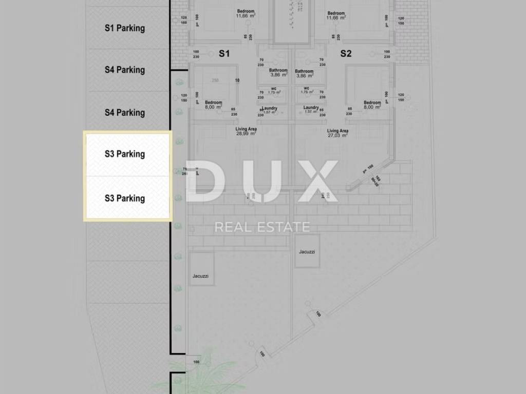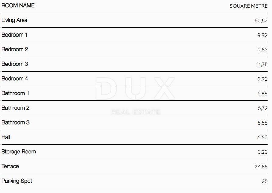 For sale are apartments in two modern buildings building A and building B located in one of the most attractive and peaceful locations on the island of Vir, just a few steps from the most famous Jadro beach. Building A is located in the first row to the sea, only 14 meters from the coast, while building B is located in the second row, about 30 meters from the sea. Jadro beach, with numerous amenities and crystal clear sea, is less than 100 meters away. The entire environment exudes peace and greenery with palm trees, Mediterranean trees and landscaped gardens of neighboring houses. In the immediate vicinity there are also restaurants, shops and all the necessary amenities for a pleasant stay throughout the year. We offer apartment AS3 on the first floor of building A a spacious and modernly furnished apartment consisting of three bedrooms, three bathrooms, one of which belongs to the master bedroom, a large living room, dining room and kitchen, hallway, storage room and a covered terrace with a beautiful sea view. The apartment comes with two private parking spaces. This apartment offers an exceptional combination of luxury, functionality and close proximity to the sea, and the carefully designed layout and quality workmanship provide maximum comfort throughout the year. The buildings are built to the highest standards reinforced concrete foundations and slabs, load-bearing walls made of 25 cm thick Porotherm Plan bricks, 1225 cm partition walls, additional sound insulation between apartments and rooms, and top-quality facade insulation Austrotherm EPS 10 cm thick with a silicone finish. Sound-absorbing cork underlay is used in the staircases, and two-layer sound insulation (Rockwool Steprock + AT-L 2) is laid on the interfloor slabs. Feal Thermo 85 aluminum joinery, Thermo 150 windows and sliding walls with triple-layer IZO glass are installed according to RAL standards. The apartments have aluminum roller shutters controlled by the Somfy TAHOMA system, solar protection glass on sunny surfaces, mosquito nets on all windows, and Hörmann security entrance doors with electric locks and the possibility of code locking. The interior doors are Hörmann Duradecor in an elegant brushed larch design. The floors are covered with Swiss Krono waterproof and extremely resistant wide parquet. The bathrooms and kitchens are decorated with large 60x120 cm ceramic tiles of modern design, with top-quality Grohe or Ideal Standard Cube equipment and walk-in shower cabins. The apartments are air-conditioned with Samsung Windfree units with Wi-Fi control, and are additionally equipped with Wi-Fi controlled electric underfloor heating in bathrooms and kitchens, Ariston Velis electric boilers, ventilation systems with air recovery in living rooms and kitchens, and preparation for electric radiators. The bathrooms have a modern cubic heated towel rail. The entire electrical installation includes top-quality outdoor lighting, pre-installation of an alarm via the TAHOMA system, LIVOLO glass switches and sockets, installed TV and internet networks in living rooms and bedrooms, as well as pre-installation of electric car chargers in parking spaces. The terraces are decorated with top-quality ceramics, artificial grass and decorative gravel, and the courtyards are enriched with ornamental plants. Private parking spaces are located within a fenced yard with automatic gates. Ambient lighting, mailboxes, waste bins, fences and gates separating private areas have been installed, as well as preparation for a jacuzzi with electrical and drainage connections. The planned completion of construction is in the spring of 2026, and there is also an additional advantage that the seller is a legal entity - the buyer is exempt from paying real estate tax. Vir is one of the most visited Croatian islands, connected to the mainland by a bridge, ideal for family vacations, sports, recreation and enjoying nature. Jadro Beach, right in front of the buildings, is known for its crystal clear sea, well-maintained facilities, facilities for children and adults, and numerous restaurants and cafes by the sea. The city of Zadar, one of the most beautiful cities on the Adriatic, is only a 25-minute drive away and offers a rich cultural and gastronomic offer. For more information and sightseeing, please feel free to contact us - this is an opportunity you do not want to miss.