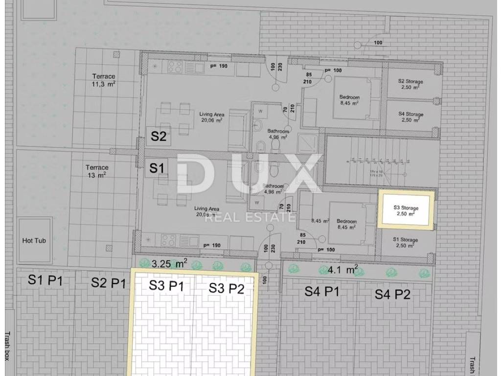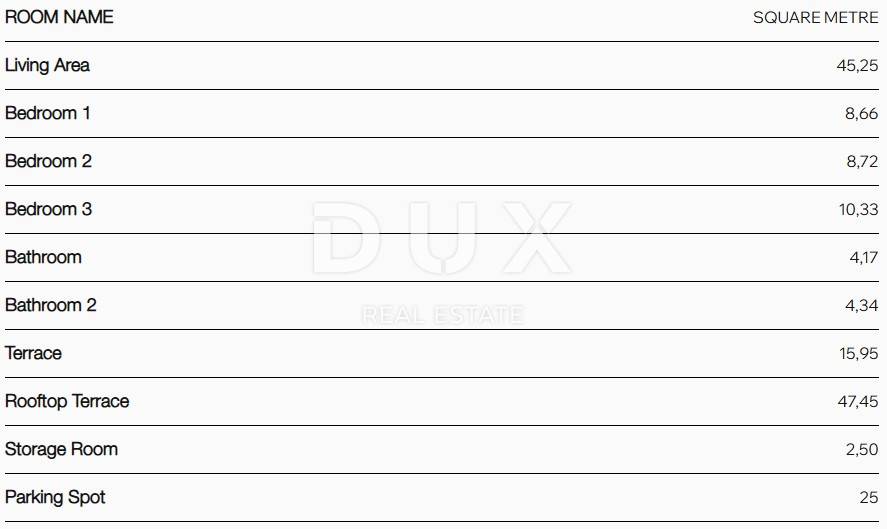 For sale are apartments in two modern buildings building B and building C located in one of the best locations on the island of Vir, right in front of the most famous and most visited Jadro beach. Building A, which is the first by the sea, has been completely sold, and now you have the opportunity to secure your apartment in buildings B and C, only 45 meters from the beach. All apartments have a beautiful sea view and have been carefully designed to provide maximum comfort, luxury and functionality throughout the year. We offer apartment CS3 on the floor of building C a spacious apartment consisting of three bedrooms, two bathrooms, a large living room, kitchen with dining room, hallway, utility room, covered terrace with a beautiful sea view and a roof terrace that also offers a captivating panoramic view. The apartment has its own storage room and two private parking spaces. The buildings are built to the highest standards - reinforced concrete foundations and slabs, load-bearing walls made of 25 cm thick Porotherm Plan bricks, 1225 cm partition walls, additional sound insulation between apartments and rooms, and top-quality 10 cm thick Austrotherm EPS facade insulation with a silicone finish. Sound-absorbing cork underlay is used in the staircases, and two-layer sound insulation (Rockwool Steprock + AT-L 2) is laid on the interfloor panels. Feal Thermo 85 aluminum joinery, windows and Thermo 150 sliding walls with triple-layer IZO glass are installed according to RAL standards. The apartments have aluminum roller shutters controlled via the Somfy TAHOMA system, solar protection glass on sun-exposed surfaces, mosquito nets on all windows, and a Hörmann security entrance door with an electric lock and the possibility of code locking. The interior doors are Hörmann Duradecor in an elegant brushed larch design. The floors are covered with Swiss Krono waterproof and extremely resistant wide parquet. The bathrooms and kitchens are decorated with large 60x120 cm ceramic tiles of modern design, with top-quality Grohe or Ideal Standard Cube fittings and walk-in shower cabins. The apartments are air-conditioned with Samsung Windfree units with Wi-Fi control, and are additionally equipped with Wi-Fi controlled electric underfloor heating in bathrooms and kitchens, Ariston Velis electric boilers, ventilation systems with air recovery in living rooms and kitchens, and preparation for electric radiators. The bathrooms have a modern cubic heated towel rail. The entire electrical installation includes top-quality outdoor lighting, pre-installation of an alarm via the TAHOMA system, LIVOLO glass switches and sockets, installed TV and internet networks in living rooms and bedrooms, as well as pre-installation of electric car chargers in parking spaces. The terraces are decorated with top-quality ceramics, artificial grass and decorative gravel, and the courtyards are decorated with ornamental plants. Private parking spaces are located within a fenced yard with automatic gates. Ambient lighting, mailboxes, waste bins, fences and gates separating private zones have been installed, and preparations for a jacuzzi with electrical and drainage connections have been made. The planned completion of construction is in the spring of 2026, and an additional advantage is that the seller is a legal entity - the buyer is exempt from paying real estate tax. Vir is one of the most visited Croatian islands, connected to the mainland by a bridge, ideal for family vacations, sports, recreation and enjoying nature. Jadro Beach, right in front of the buildings, is known for its crystal clear sea, well-maintained facilities for children and adults, and numerous restaurants and cafes by the sea. The city of Zadar, one of the most beautiful cities on the Adriatic, is only a 25-minute drive away and offers a rich cultural and gastronomic offer. For more information and sightseeing, feel free to contact us - this is an opportunity you do not want to miss.