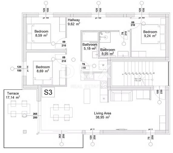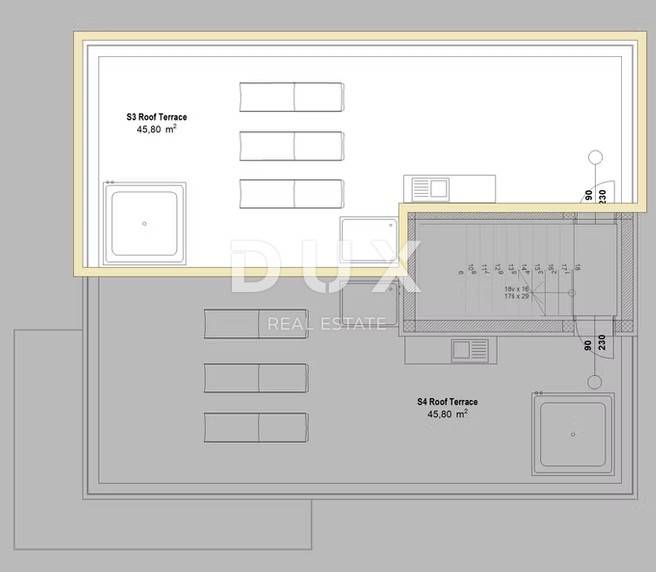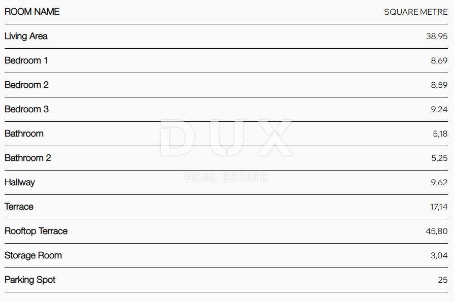 For sale are apartments in two modern buildings building B and building C located in one of the best locations on the island of Vir, right in front of the most famous and most visited Jadro beach. Building A, which is located first by the sea, has been completely sold, and now you have the opportunity to secure your apartment in buildings B and C, only 45 meters from the beach. All apartments have a beautiful sea view and have been carefully designed to provide maximum comfort, luxury and functionality throughout the year. We offer apartment BS3 on the floor of building B a spacious apartment consisting of three bedrooms, two bathrooms, a large living room, kitchen with dining room, hallway, covered terrace with a beautiful sea view and a roof terrace that also offers a captivating panoramic view. The apartment has its own storage room and two private parking spaces. The buildings are built to the highest standards - reinforced concrete foundations and slabs, load-bearing walls made of 25 cm thick Porotherm Plan bricks, 1225 cm partition walls, additional sound insulation between apartments and rooms, and top-quality 10 cm thick Austrotherm EPS facade insulation with a silicone finish. Sound-absorbing cork underlay is used in the staircases, and two-layer sound insulation (Rockwool Steprock + AT-L 2) is laid on the interfloor panels. Feal Thermo 85 aluminum joinery, windows and Thermo 150 sliding walls with triple-layer IZO glass are installed according to RAL standards. The apartments have aluminum roller shutters controlled via the Somfy TAHOMA system, solar protection glass on sun-exposed surfaces, mosquito nets on all windows, and a Hörmann security entrance door with an electric lock and the possibility of code locking. The interior doors are Hörmann Duradecor in an elegant brushed larch design. The floors are covered with Swiss Krono waterproof and extremely resistant wide parquet. The bathrooms and kitchens are decorated with large 60x120 cm ceramic tiles of modern design, with top-quality Grohe or Ideal Standard Cube fittings and walk-in shower cabins. The apartments are air-conditioned with Samsung Windfree units with Wi-Fi control, and are additionally equipped with Wi-Fi controlled electric underfloor heating in bathrooms and kitchens, Ariston Velis electric boilers, ventilation systems with air recovery in living rooms and kitchens, and preparation for electric radiators. The bathrooms have a modern cubic heated towel rail. The entire electrical installation includes top-quality outdoor lighting, pre-installation of an alarm via the TAHOMA system, LIVOLO glass switches and sockets, installed TV and internet networks in living rooms and bedrooms, as well as pre-installation of electric car chargers in parking spaces. The terraces are decorated with top-quality ceramics, artificial grass and decorative gravel, and the courtyards are decorated with ornamental plants. Private parking spaces are located within a fenced yard with automatic gates. Ambient lighting, mailboxes, waste bins, fences and gates separating private zones have been installed, and preparations for a jacuzzi with electrical and drainage connections have been made. The planned completion of construction is in the spring of 2026, and an additional advantage is that the seller is a legal entity - the buyer is exempt from paying real estate tax. Vir is one of the most visited Croatian islands, connected to the mainland by a bridge, ideal for family vacations, sports, recreation and enjoying nature. Jadro Beach, right in front of the buildings, is known for its crystal clear sea, well-maintained facilities for children and adults, and numerous restaurants and cafes by the sea. The city of Zadar, one of the most beautiful cities on the Adriatic, is only a 25-minute drive away and offers a rich cultural and gastronomic offer. For more information and sightseeing, feel free to contact us - this is an opportunity you do not want to miss.