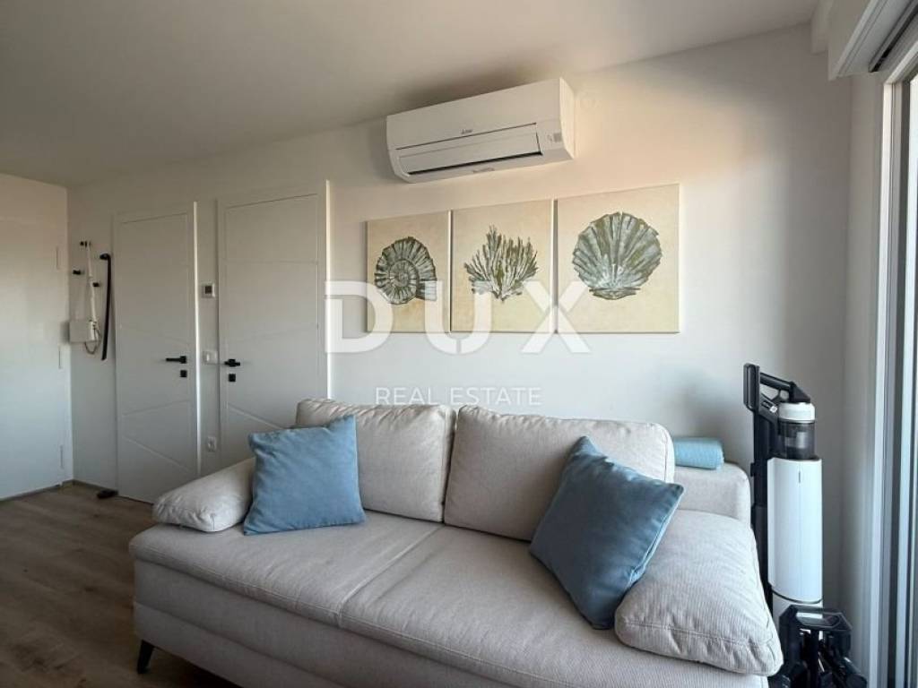 SMART HOME apartment for sale in a quiet location near the sea! This is an apartment located on the first floor of a small building that is fully equipped with a SMART system for controlling literally almost everything in the apartment via a mobile device! It offers an area of 39.73 m2 of living space + part of the yard of 11.20 m2. It consists of an open concept living room, kitchen and dining room, bedroom, bathroom and a large terrace that has access from the bedroom as well as the living room. The apartment also has one parking space. EQUIPMENT: A Mitschubishi air conditioner is installed for heating and cooling. The apartment has three wifi thermostats for underfloor heating. Electric blinds that are controlled via a remote device as well as ambient light regulation via a remote control. Occupancy permit! The apartment is sold furnished and is ready to move in immediately!