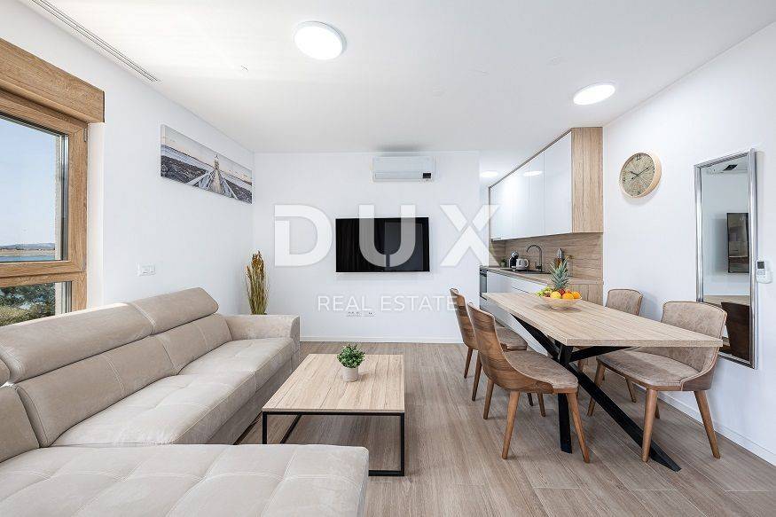 We have for sale a two-bedroom apartment in a new building, located in the first row to the sea, in one of the most sought-after microlocations in Povljana. Apartment S8 is located on the first floor of a modern building and covers 46.64 m of living space. The apartment consists of a spacious living room with kitchen and dining room, one bedroom, bathroom and a covered loggia - perfect for enjoying your first morning coffee or an evening rest with the sound of the waves. What makes this apartment special is the combination of modern comfort and functionality. An underfloor heating and air conditioning system connected to a heat pump is installed, which means that you have heating, cooling and hot water throughout the year on one energy-saving system. The interior is carefully designed, with custom-made equipment and furniture, and every detail is designed with an emphasis on quality and durability. A parking space in front of the building is included in the price. Only 10 meters from the beach, the apartment is an ideal opportunity for all those looking for peace, quality and proximity to the sea - whether for personal vacation, permanent residence or as a safe investment for tourist rental. The apartment is in the VAT system, the buyer does not pay tax on the acquisition of real estate.