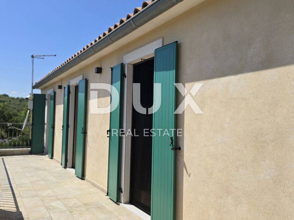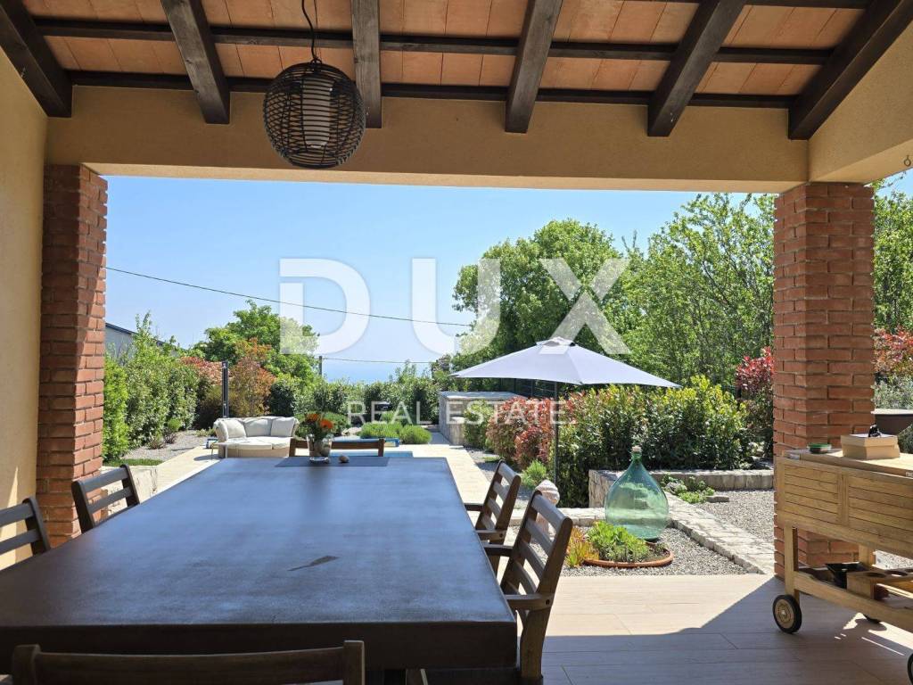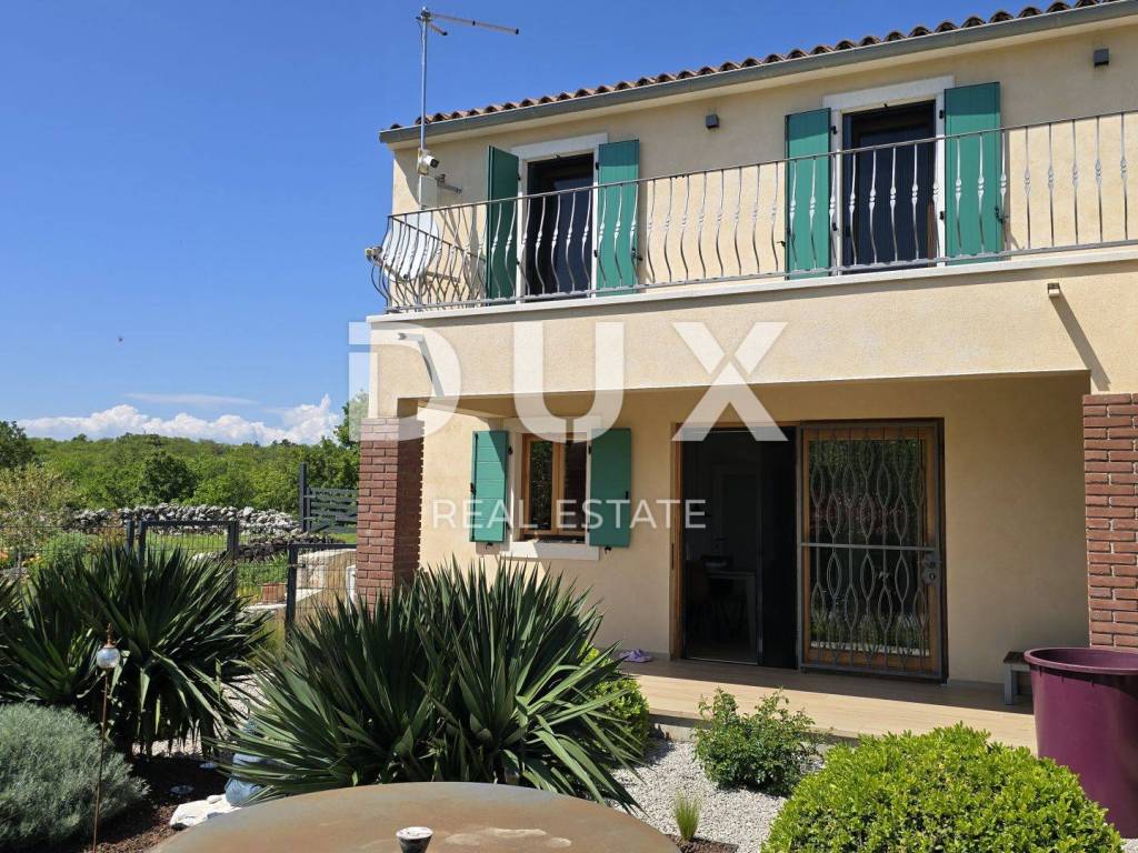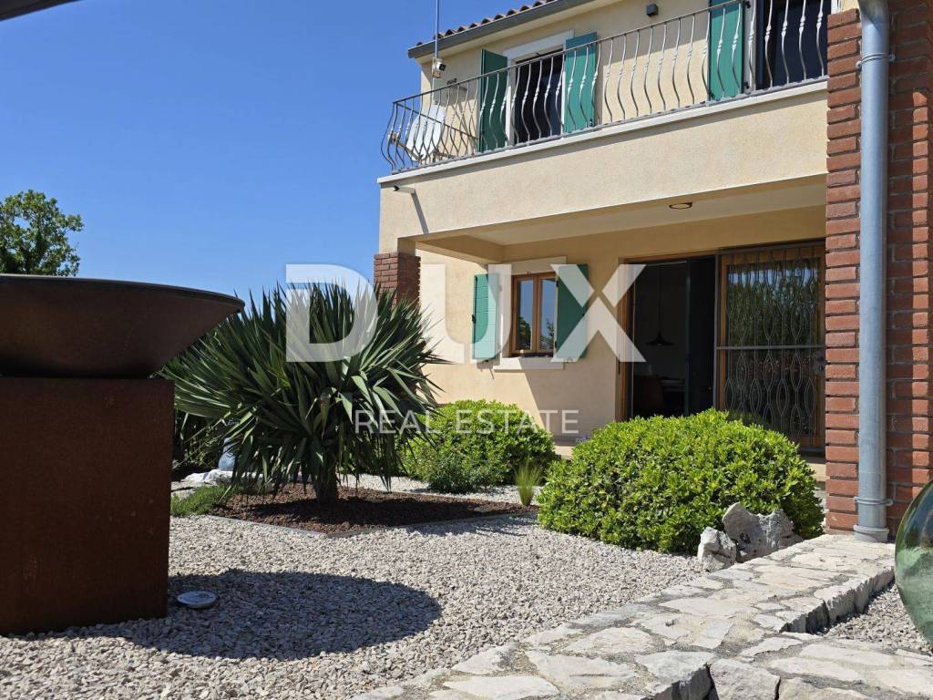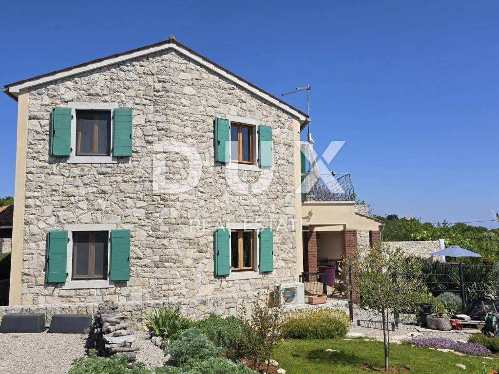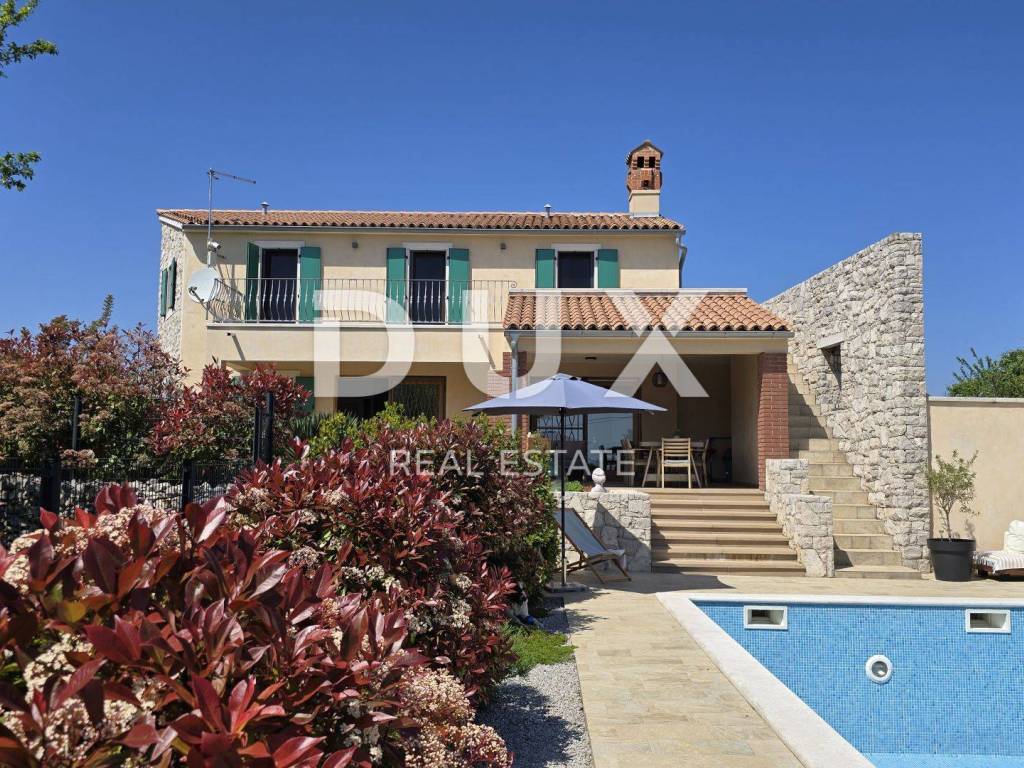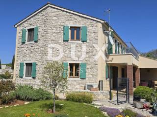 On a hill above the crystal clear Adriatic Sea, between Pula and Opatija, lies this enchanting Mediterranean stone house - a perfect blend of Istrian tradition, elegance and modern comfort. It is located near the charming town of Labin, where the historic core and modern comfort intertwine in a unique ambience that increasingly attracts lovers of an authentic lifestyle. The house spreads over 173 m of carefully designed space and offers three bright bedrooms, each with its own balcony and breathtaking views - sea, greenery and sky in perfect harmony. The interior exudes warmth and character - natural stone, wood and Mediterranean colors create a cozy atmosphere, while contemporary elements such as a modern kitchen with osmosis for drinking water and an elegant fireplace elevate everyday living to a higher level. On the ground floor, you are greeted by a spacious living room with a dining area and an open-concept kitchen, with large glass walls connecting the interior with the outdoor terrace. The view extends to the private pool and the well-kept garden, which is designed as a true Mediterranean oasis with fragrant herbs, flower alleys and a relaxation corner. The terrace with an outdoor dining table and barbecue is perfect for long summer gatherings with family and friends. In addition to the main bathroom, there is an additional guest bathroom, as well as a practical toilet on the ground floor. In the basement there is a large, cool room ideal for a wine cellar or storage. What further sets this house apart is the additional side plot an exceptional opportunity for expansion, a garden, a children's playground or your own olive grove. The property is fully fenced, equipped with a 70 m water tank, which ensures environmentally friendly, self-sustainable living, and security and privacy are guaranteed. This house is not just an investment in real estate it is a lifestyle. A place where you can slow down, breathe deeply and truly enjoy every moment whether it is permanent living, a luxury vacation or a tourist rental.