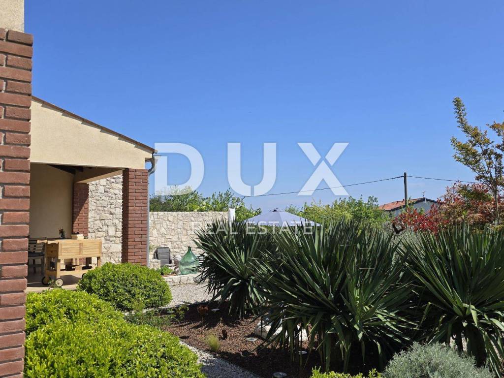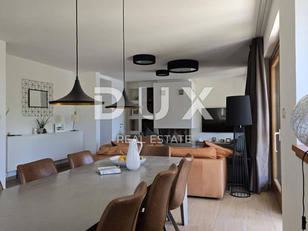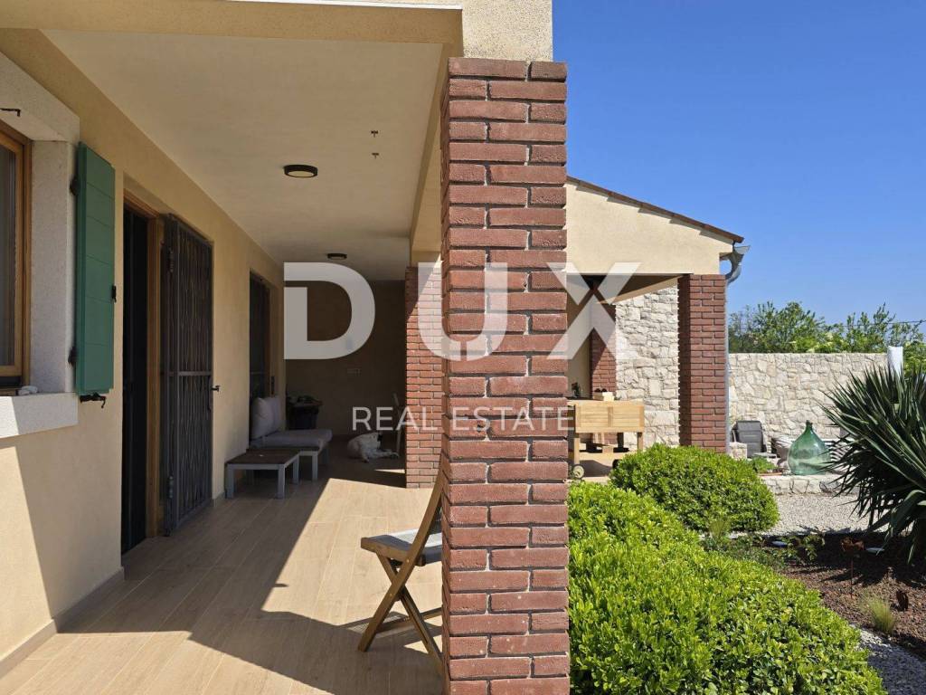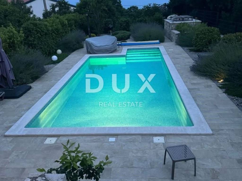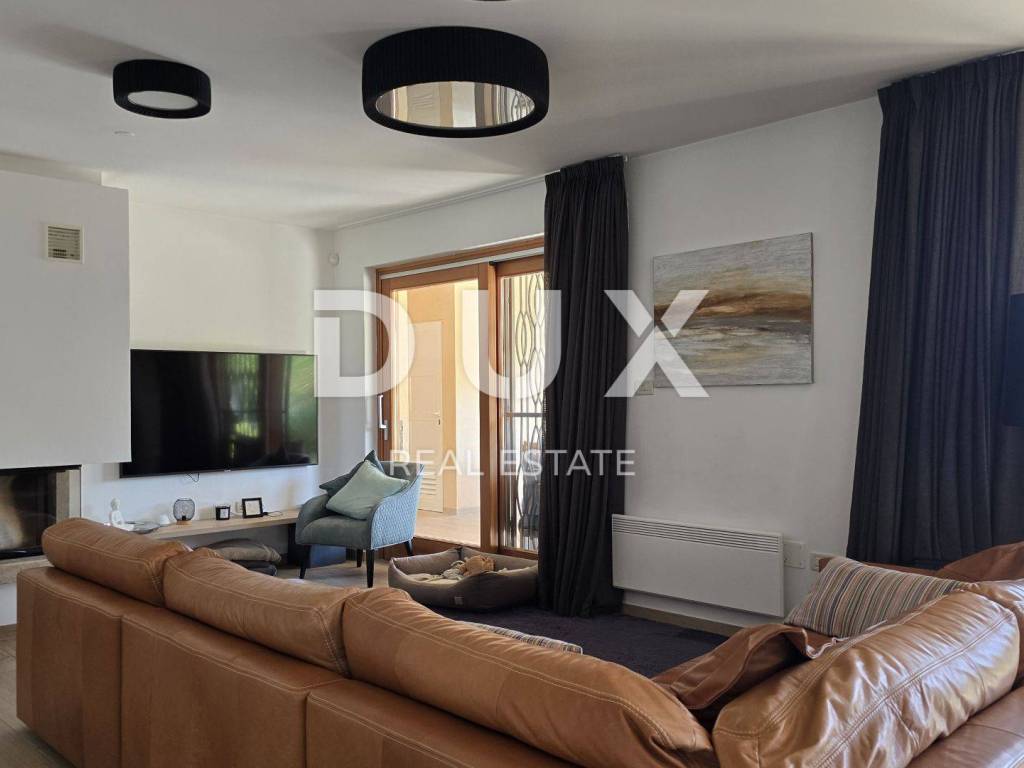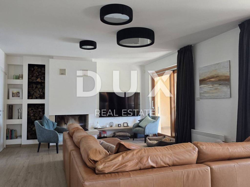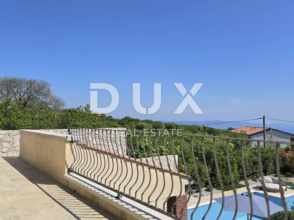 On a hill above the crystal clear Adriatic Sea, between Pula and Opatija, lies this enchanting Mediterranean stone house - a perfect blend of Istrian tradition, elegance and modern comfort. It is located near the charming town of Labin, where the historic core and modern comfort intertwine in a unique ambience that increasingly attracts lovers of an authentic lifestyle. The house spreads over 173 m of carefully designed space and offers three bright bedrooms, each with its own balcony and breathtaking views - sea, greenery and sky in perfect harmony. The interior exudes warmth and character - natural stone, wood and Mediterranean colors create a cozy atmosphere, while contemporary elements such as a modern kitchen with osmosis for drinking water and an elegant fireplace elevate everyday living to a higher level. On the ground floor, you are greeted by a spacious living room with a dining area and an open-concept kitchen, with large glass walls connecting the interior with the outdoor terrace. The view extends to the private pool and the well-kept garden, which is designed as a true Mediterranean oasis with fragrant herbs, flower alleys and a relaxation corner. The terrace with an outdoor dining table and barbecue is perfect for long summer gatherings with family and friends. In addition to the main bathroom, there is an additional guest bathroom, as well as a practical toilet on the ground floor. In the basement there is a large, cool room ideal for a wine cellar or storage. What further sets this house apart is the additional side plot an exceptional opportunity for expansion, a garden, a children's playground or your own olive grove. The property is fully fenced, equipped with a 70 m water tank, which ensures environmentally friendly, self-sustainable living, and security and privacy are guaranteed. This house is not just an investment in real estate it is a lifestyle. A place where you can slow down, breathe deeply and truly enjoy every moment whether it is permanent living, a luxury vacation or a tourist rental.