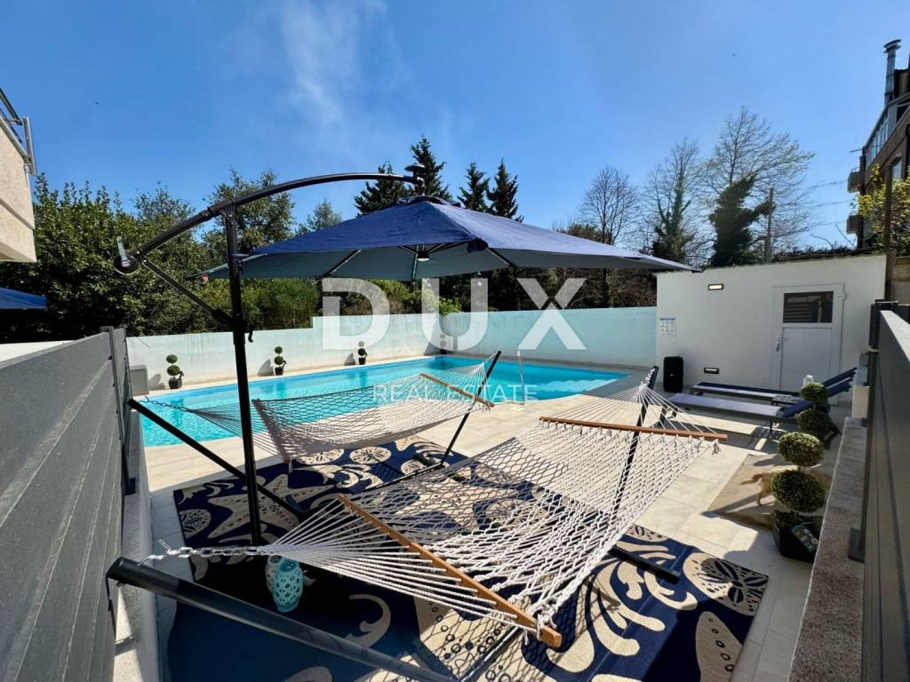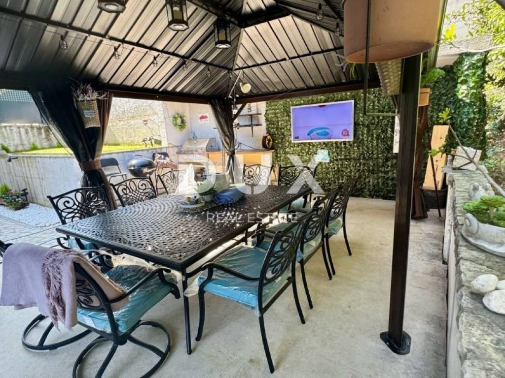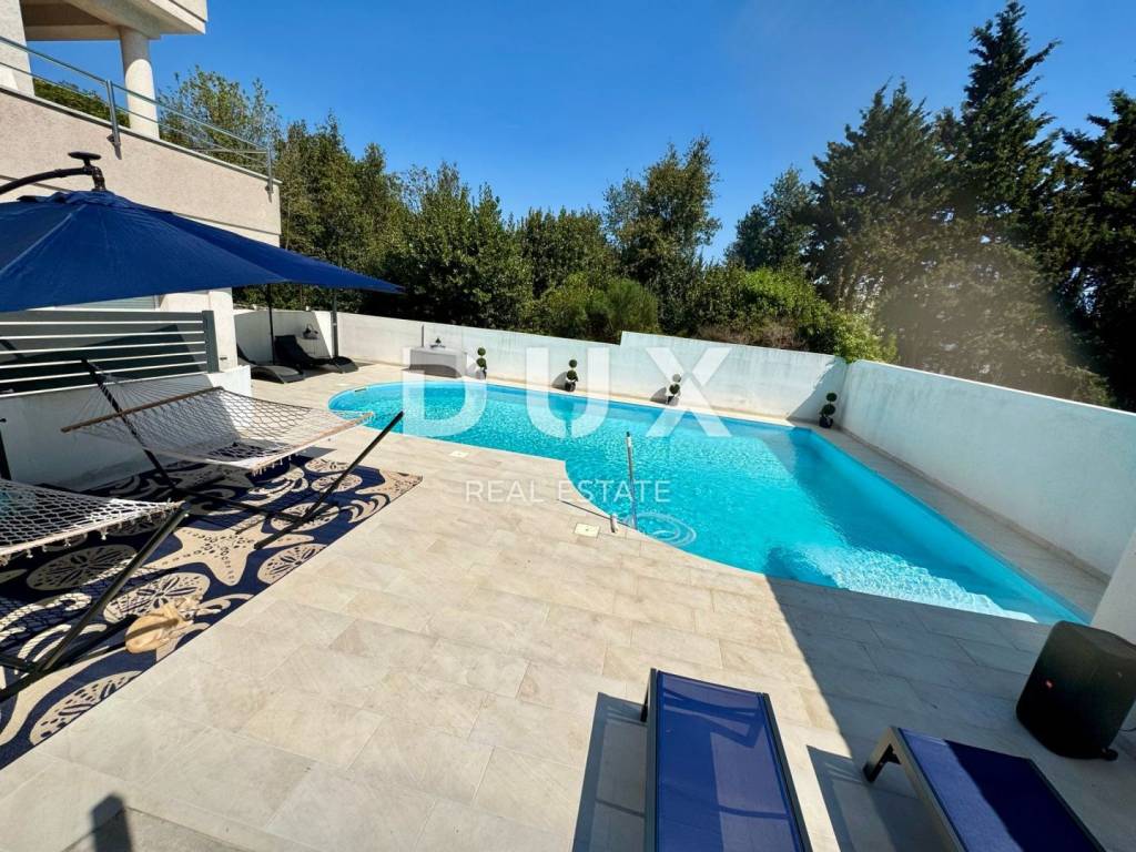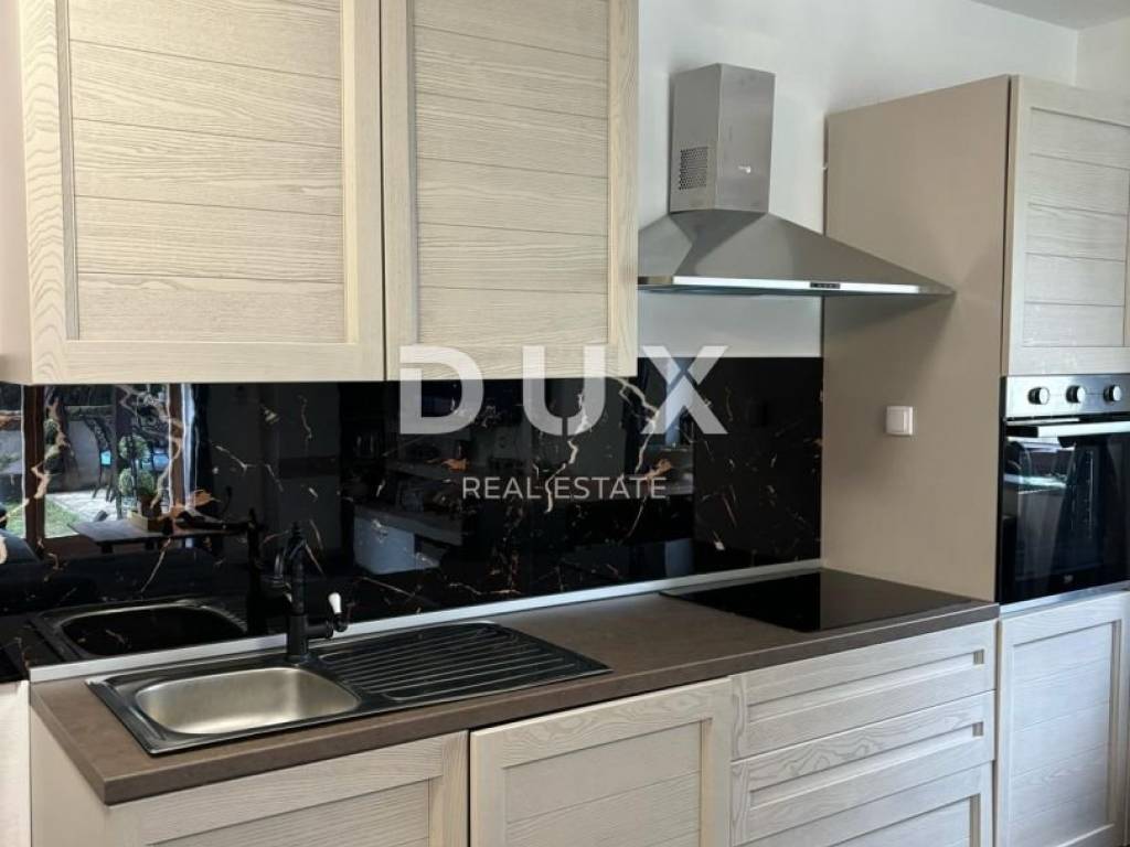 DUX nekretnine offers an apartment that functions almost like a house! It is an apartment that has a garden that offers you a swimming pool, a sunbathing area, a beautiful sitting and living area, and additional space that will make you feel like you are staying in a house, not an apartment, which makes this property extremely attractive. LOCATION: The apartment is located in a quiet street so that even during the summer months there is no noise or crowds, and you are right next to the beaches and all amenities. The apartment offers a living room with a kitchen with access to the aforementioned garden, two bedrooms and two bathrooms. Air conditioning is used for heating and cooling. It is sold furnished. 1/1 ownership. No encumbrances. We are at your disposal for any further questions!