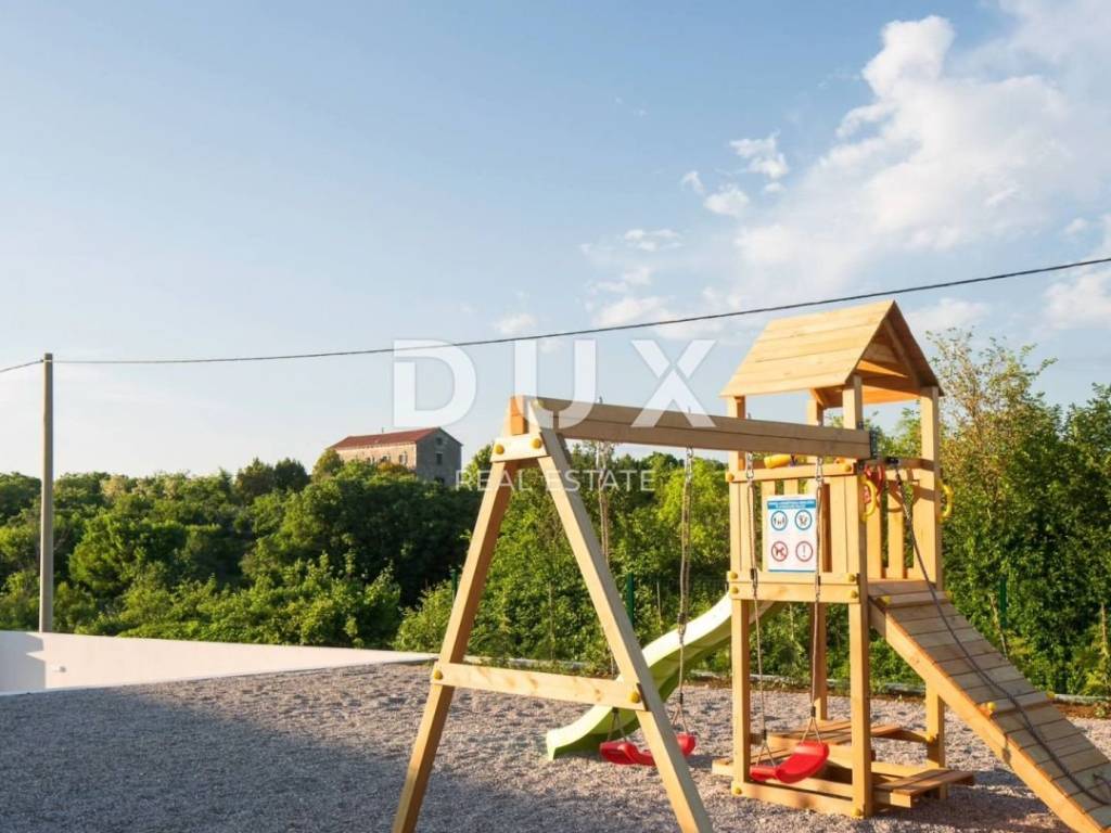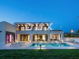 On the southeastern coast of Istria, where the green hills merge with the blue of the Adriatic, this exclusive villa is located - the perfect refuge for those seeking peace, style and top quality of life. In the immediate vicinity of the picturesque old town of Labin and the charming Rabac with its crystal-clear beaches, this property offers the ideal balance between privacy, nature and urban amenities. This impeccably designed villa exudes sophistication, comfort and harmony with the natural environment. Located in a well-maintained settlement, it offers complete privacy and a sense of security, yet is close enough to all amenities for a pleasant stay throughout the year. The interior is modernly designed with an emphasis on functionality and aesthetics. A spacious living room with a fireplace, an elegant dining room and a modernly equipped kitchen, all connected to a covered terrace and a summer kitchen with a fireplace - perfect for relaxing and socializing outdoors. The ground floor is further enriched by a wellness area with a sauna and a gym with a separate bathroom, a bedroom with an en suite bathroom, and numerous auxiliary spaces - a laundry room, toilet, technical room and storage room. Upstairs there are three luxurious bedrooms, each with its own bathroom and access to a covered terrace with a pergola that offers a captivating view and a feeling of complete freedom. The garden is carefully landscaped and fully fenced, with automatic irrigation, and the central place is occupied by a 39 m heated swimming pool with a sunbathing area. Additional value is provided by a private tennis court and a children's playground - perfect for families and lovers of an active life. There is also a carport for two cars. The villa is fully air-conditioned, and central heating has been installed, which allows for a pleasant stay in all seasons. There is also fast optical internet and Smart TV in each bedroom. This property is a perfect choice for those looking for a luxury family villa or a smart investment in tourist rental - the combination of superb location, quality construction and amenities makes this villa a unique opportunity on the market.