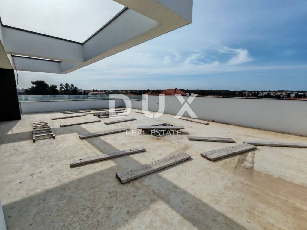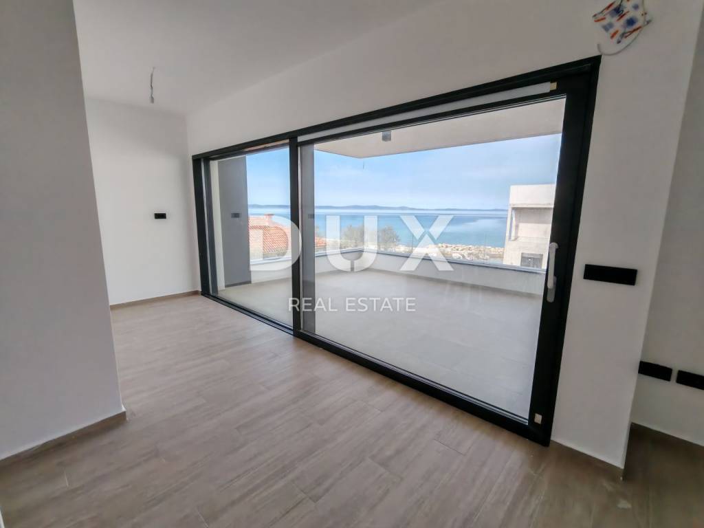 For sale is a top luxury penthouse on the second floor of a modern new building, located only 30 meters from the sea, in the beautiful seaside resort of Zaton near Zadar. The apartment with a total net area of 98.36 m2 offers the perfect combination of contemporary design, functionality and an excellent location. The penthouse consists of an entrance hall, a modern kitchen with a dining room and a spacious living room, three comfortable bedrooms - one of which has its own bathroom - additional bathrooms and a separate laundry room. The living room and dining room are connected to the terrace by a large glass sliding wall that allows plenty of natural light and offers a stunning view of the sea. The building was built to the highest standards: aluminum joinery from the renowned manufacturer Schüco with electric shutters and blinds, a Schindler elevator, top-quality large-format ceramics, underfloor heating using a heat pump and Mitsubishi air conditioners for maximum comfort throughout the year. The bedrooms have high-quality parquet flooring, and the entire property exudes elegance and quality. The apartment is subject to VAT, which means that the buyer does not pay real estate tax. The energy certificate A is in the process of being obtained, and the move-in is planned for summer 2025 - the ideal time to enter a new story by the sea. Zaton is a charming Dalmatian town that combines the peaceful atmosphere of the Mediterranean coast with modern amenities. It is known for its beautiful promenade by the sea, clean beaches, and the Holiday Resort Zaton - one of the most famous tourist complexes in Croatia, which offers numerous facilities for the family, sports and recreation. Just a few minutes drive away is the historic city of Zadar, full of cultural heritage, excellent gastronomy and unforgettable sunsets. If you are looking for a dream home, a luxury resort or a smart investment on the Adriatic coast - this is an opportunity you do not want to miss. For all additional information and a viewing, please feel free to contact us - we will be happy to guide you through this exceptional property.