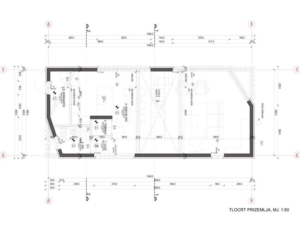 It is in this small town, only 1000 m from the sea, that the construction of this villa will begin, the construction of which should be completed in 2023. The villa consists of a ground floor and a first floor. On the ground floor there is a spacious kitchen with a pantry, a toilet, a spacious dining room and a living room that share a large terrace for enjoying summer evenings, while on the first floor there are two large bedrooms each with its own bathroom and a large hallway. The heat in the villa will be provided by underfloor heating and air conditioning.