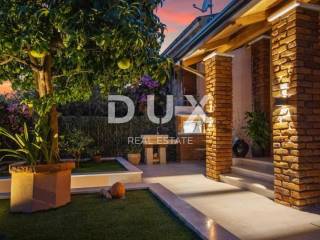 This is a high-quality family villa, with an imposing character that exudes the luxury and warmth of a true modern family home. This beautiful villa is located just a few minutes walk from the unique city center of Rovinj in a peaceful environment of family houses and natural greenery. This is certainly a villa worth your attention. With its timeless interior design, quality materials and excellent construction techniques, this villa will certainly serve you and your family as an ideal hideaway for escaping the noise and crowds. Maximum comfort and quality of life is ensured by the selection of first-class furniture, high-quality appliances from renowned world manufacturers, as well as the high-quality technical equipment with which this villa is equipped. Impeccable simplistic modern design and simple lines run through the entire villa with a touch of warmth as befits a true family home. In addition, this is a villa with numerous possibilities for developing a tourist product of a high level of luxury and a secure return on investment. PROPERTY DESCRIPTION: Upon entering the villa, we find ourselves in the villa's lobby, which separates the private area from the living area. The living area of the villa is designed as an "open space" area, which houses the dining room with a modern and fully equipped kitchen with top-quality appliances from a renowned world manufacturer. Further in the space, there is a spacious living room, which is designed to be separated from the kitchen and dining room by a modern semi-open wood-burning fireplace, which creates a special atmosphere during your stay in the house, with high-quality space heating. In the living room, we are greeted by high-quality and carefully selected furniture, custom-made exclusively for this villa. However, to make your stay in the villa even more pleasant, the owners have made an effort, and access to a larger outdoor covered terrace extends through the kitchen. Next to the same terrace, there is an outdoor barbecue, ideal for entertaining friends and family, and preparing your favorite delicacies. In the private part of the ground floor, there are two comfortable bedrooms and two spacious bathrooms. The hallway leads us to the wellness area, which includes a sauna and jacuzzi, equipped with anti-slip tiles, Bluetooth speakers and an air purifier. The wellness area opens onto a landscaped courtyard and garden with a swimming pool, a covered summer kitchen, an outdoor shower and a toilet. The house has an underground space of 9m2 that can be used as a wine cellar or cigar room where you can enjoy a glass of good wine and a cigar. The villa's courtyard is completely fenced and decorated in the same tone as the villa with plenty of greenery and local plants. The greenery in the courtyard and lawn is simply taken care of by an automatic irrigation system, and a special atmosphere is created at night with a cleverly designed lighting system. ADDITIONAL INFORMATION: *heating and cooling: inverter air conditioners, underfloor heating on city gas; *excellent sound and heat insulation; *new water and electricity installations; *Viessmann sanitary water purifier; *jacuzzi (with 10 massage jets) and a hydrolysis pool (salt); heated; *custom-made sauna *front outdoor lighting on timer, side and rear on Luxomat; *video surveillance *automatic irrigation; VILLA LOCATION; In addition to the fact that this is one of the most luxurious locations in the Republic of Croatia, the unavoidable city of Rovinj, this villa is carefully located in a quiet part of town with proximity to all necessary amenities, which are only a 2 to 3 minute easy walk away. The owners have also carefully chosen the location of the villa to ensure maximum privacy and peace during your stay in the villa. For any additional questions, necessary information or if you would like to organize a viewing of the villa, please feel free to contact us!