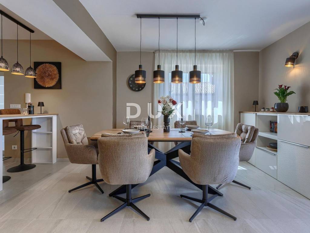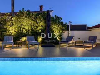 On the southeastern coast of Istria, where green hills meet the sea, where nature and heritage unite, there are two towns of similar size, but with different, yet complementary characters - Labin and Rabac. The picturesque town of Labin rises on a 320m high hill, only five kilometers from the white pebble beaches of Rabac. Interwoven with a rich history and mining that marked this area, Labin, which was briefly declared an independent republic, is today a fascinating city of contradictions; old and new, history and present, tourism and art. Not far from the town of Labin, there is a house with a swimming pool for sale. The recently renovated house consists of a basement, ground floor and first floor. The basement has a kitchen with a fireplace, a pantry and a utility room. The ground floor consists of a living room, dining room and kitchen with access to a pergola-covered terrace, a bedroom with a private bathroom, a toilet and a storage room. On the first floor there are two bedrooms, each with its own bathroom and access to a terrace. The house is heated/cooled by air conditioning and electric underfloor heating. The fenced garden contains a 23 m swimming pool with a sunbathing area and an auxiliary building of 28 m which is used as a storage room but can be converted into a wellness/fitness zone or a studio apartment. The property is fully equipped and furnished and is being sold as such. An ideal property for family life or as an investment for rental for tourist purposes.
