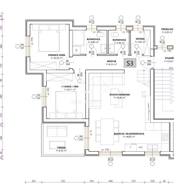 In a quiet part of Vodice, located on the first floor of the building, there is a spacious apartment of 119.34 m, perfect for a pleasant family life or as an investment for rent. The apartment is divided into the first floor and a roof terrace. On the first floor we enter the hallway, storage room, bathroom, separate toilet, and two comfortable bedrooms. The central part of the apartment is made up of a spacious open-concept living room that connects to the modern kitchen and dining room. The dining room leads to a covered terrace, an ideal place to enjoy the fresh air - whether it's morning coffee or dinners with family and friends. An internal staircase leads to the roof terrace. On this floor there is a hallway from which you enter another bedroom with its own bathroom and access to the terrace. Also, from the hallway there is a separate exit to a large roof terrace with a beautiful view of the surroundings. This terrace is perfect for relaxation, barbecues or gatherings with family and friends. The apartment is functional, and represents an ideal opportunity for those looking for a quiet place to live or an exceptional investment for tourist rental. In the construction of this apartment, only high-quality materials were used, and every detail was carefully planned to ensure durability and functionality. Attention has been paid to all aspects - from floors and wall coverings, to sanitary ware and carpentry, ensuring a high standard of quality of life. The apartment is located in a quiet part of Vodice, which makes it perfect for those looking for relaxation and privacy, while at the same time wanting to be close to all necessary amenities such as shops, schools, restaurants and beaches. This is an excellent opportunity to invest in a quality and modern apartment in an attractive location! VODICE - Charming nightlife town and beach Vodice is a small tourist destination located 10 kilometers north of Šibenik. It is popular among young visitors looking for lively places. Vodice boasts great hotels, beaches and a rich nightlife offer. The name "Vodice" was first mentioned in written works in 1402, although it is known that people lived there in Roman times. The place was named "Vodice" because of the abundance of water and wells. Nearby is the islet of Prvić, the city of Split is 69 km away, Zadar is 59 km away, and the nearest airport is 49 km away.