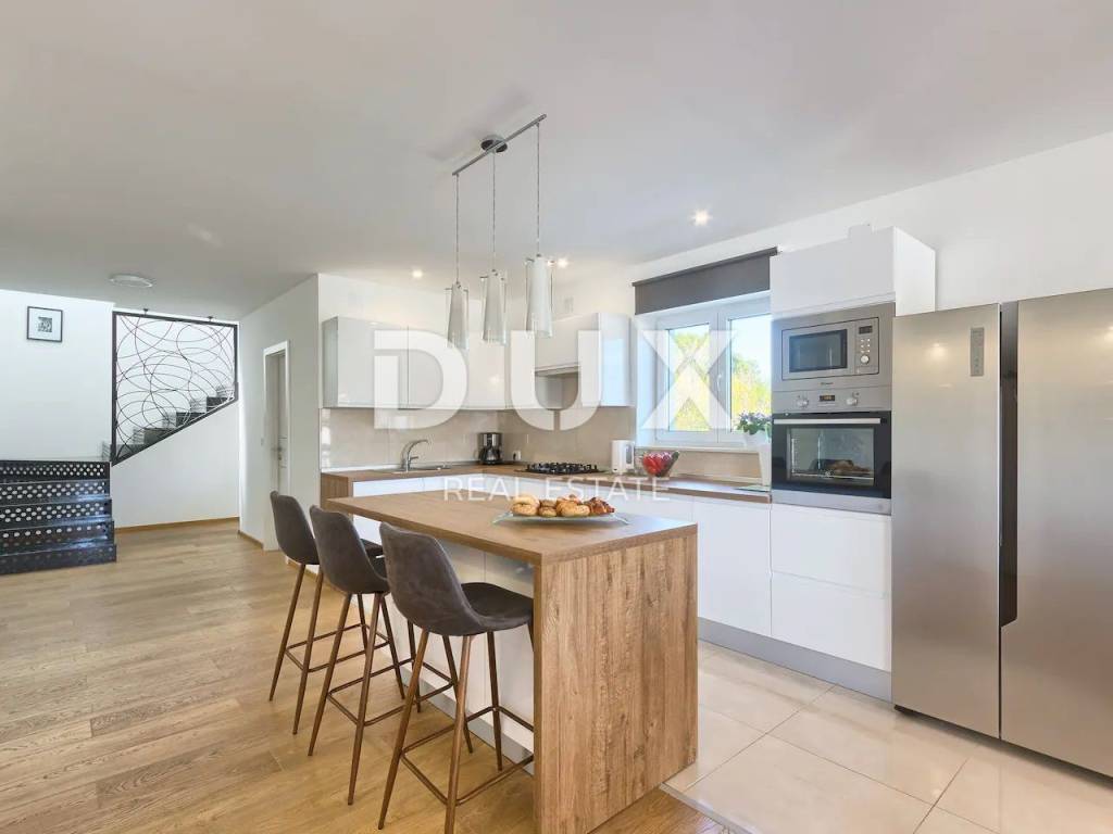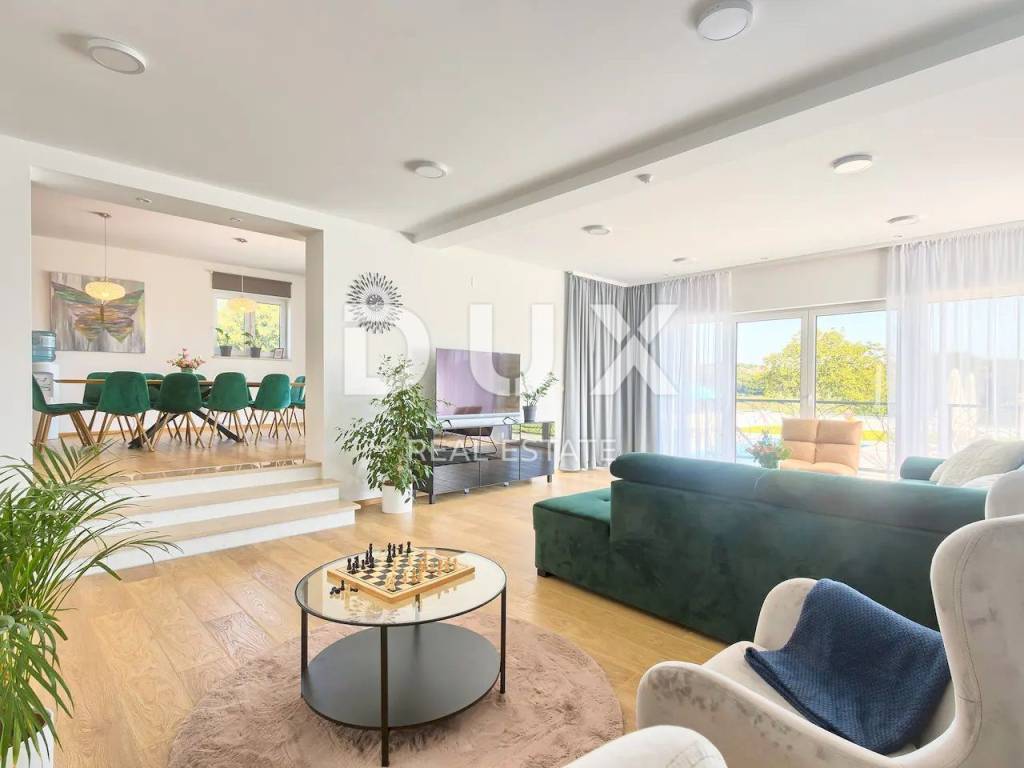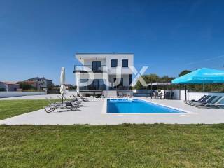 This beautiful, high-quality, modern, self-sustainable house with a swimming pool of 570 m and a garden of 1758 m is located right in Štinjan. The house consists of three floors. The first floor is a basement that is located along the entire surface of the house and leaves the future owner with the opportunity to use the same part of the house for the purpose of a tavern, gym, wellness, playroom, etc. On the ground floor, which is 190 m, there is a large, bright living room with access to the terrace and the house's garden, a custom-made kitchen equipped with high-quality appliances that enable quality and economical use, a spacious dining area, a spacious bedroom and bathroom. On the first floor, there are four bright and spacious bedrooms, each of which is equipped with a separate bathroom, television, sliding wardrobe, air conditioning unit, and each room has access to a comfortable shared terrace. In the beautiful, green garden there is a 64 m swimming pool, a large sunbathing area with an outdoor shower, a hand-made stone fireplace next to which there is a spacious covered area for dining and enjoying the wonderful surroundings. The villa has its own fresh water supply, which is purified through multiple filters and stored in large boilers and used for the garden and household. In addition to its own water supply, there are solar panels on the Villa's flat roof. These two facts give the real estate, in addition to its modern design, spaciousness and quality, a self-sustaining, economical and ecologically green side. In addition to the mentioned Villa, not only is a luxurious, self-sustainable property ready to move in for sale, but also its location, which is located in a peaceful environment, yet close to the sea and all the accompanying facilities for life, which gives the future buyer the opportunity to enjoy it in the sense of a family of life, as well as engaging in the catering activity of renting and quick return of invested funds.