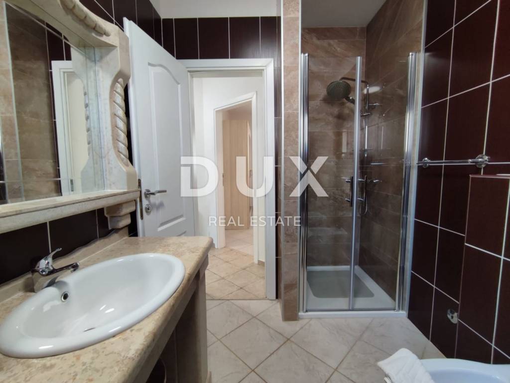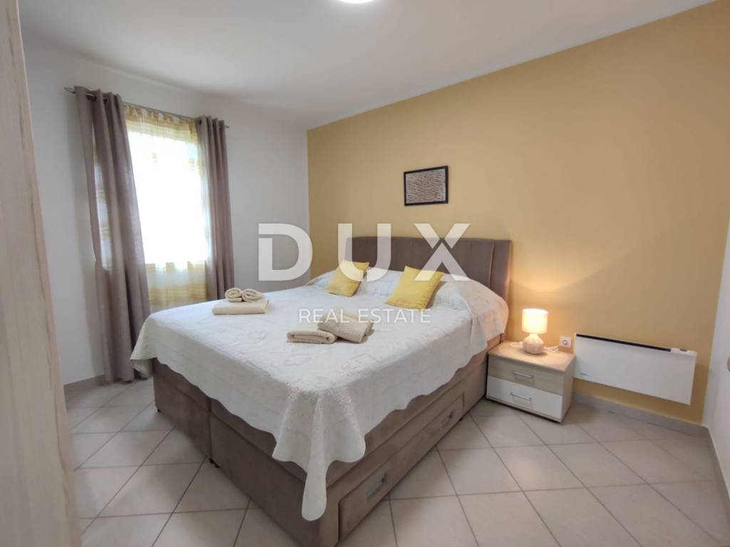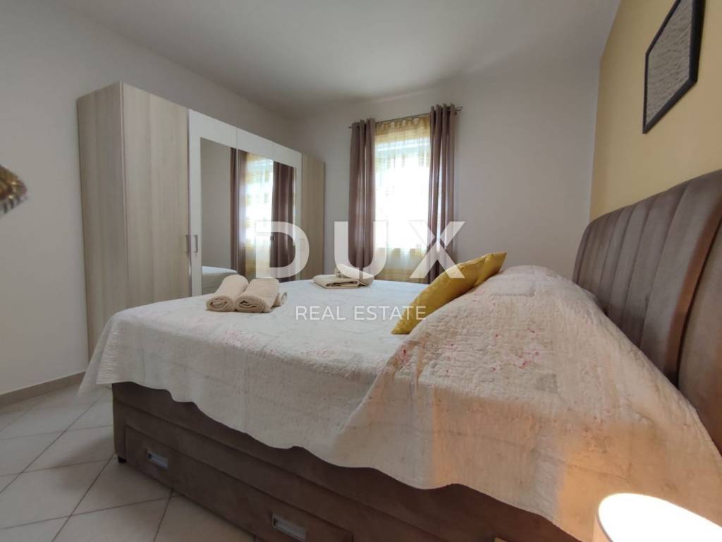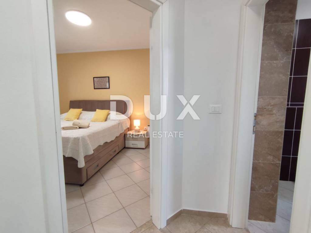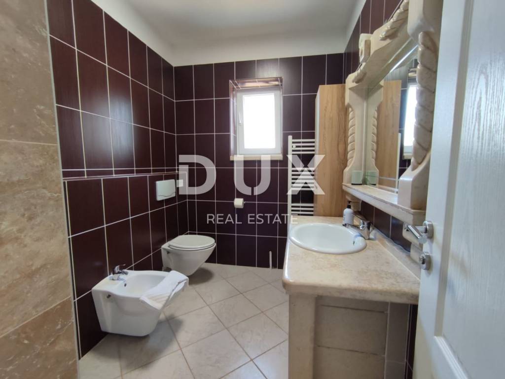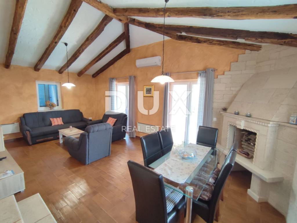 A charming stone villa built in the traditional Istrian style with distinctive blue shutters, located in the suburbs of Poreč. The traditional Istrian style is combined with a beautifully decorated interior, which contains all the necessary modern conveniences in a homely atmosphere. The house has a total area of 145 m2 and extends over two floors. On the ground floor there is a spacious living room and dining room with a kitchen that has a separate exit to the yard, one bedroom, a bathroom and a storage room. From the dining room and living room there is access to a covered terrace with a beautiful view of the pool and yard. A stone staircase leads to the first floor, where there are two more spacious bedrooms, one with its own bathroom and another separate bathroom. Cooling is through air conditioning, and heating is possible through wall-mounted electric regulators. On the 770m2 plot there is a 33m2 swimming pool and a covered summer kitchen and dining room, where you can enjoy family meals prepared on the grill and a view of the beautiful green garden. The house also has a covered parking space for three cars. It is located very close to the highway exit. Restaurants, wineries, school, kindergarten, post office, shop, nature park are nearby. The distance from Poreč and the beach is only 12 km.