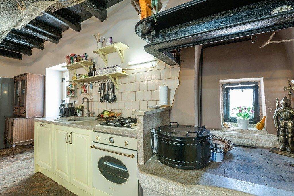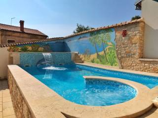 Thanks to its rich history, very favorable climate and exceptional natural beauty, Vodnjan will delight you with its charm and cultural heritage, as well as a variety of activities. Here you will come across countless ideas for an unforgettable vacation, whether it is an active or family vacation, a summer vacation during the sunniest months or a quiet and relaxing vacation in spring or autumn. Right in the old town center of Vodnjan, we are selling a magical villa with a view of the Brijuni Islands! The villa has a total living area of 537m2 and consists of 5 residential units. On the ground floor there is a two-room apartment consisting of a hallway, a living room, a kitchen with a dining room, two bedrooms, a bathroom and a separate entrance. The stairs lead to the first floor, where there are three residential units, which are one-room apartments with separate entrances. The residential units on the first floor consist of a living room, a kitchen with a dining room, a bathroom, a bedroom and a balcony. On the second floor, there is a large, spacious apartment consisting of three bedrooms, kitchen, living room, bathroom, toilet, and a beautiful terrace that offers a direct panoramic view of the Brijuni Islands and Fažana. The spacious apartment has many entertainment facilities such as billiards, table football and darts. The grounds of the villa are a real little fairy tale because of the wonderful contents and details on it. Inside the garden there is a beautiful swimming pool with a waterfall, which in the background has beautiful painted walls that create a special atmosphere. In the garden there is also an outdoor table for undisturbed enjoyment, a kazun inside which there is an outdoor toilet, and a special detail that completes this little fairy tale is the restored well. The villa also has a tavern with a kitchen and a fireplace and a handful of restored details from wooden beams to furniture, which contributes to the complete atmosphere of this magical property. In addition to all of the above, the villa also has its own small winery to complete the real little magic within this property. It is categorized as a four-star holiday home. The property also has a boiler room, engine room, three entrances to the house and two parking spaces. The villa has air conditioning, a potash stove, pipes for central heating, as well as pellet heating. The house was completely renovated in 2014. The villa is sold furnished.