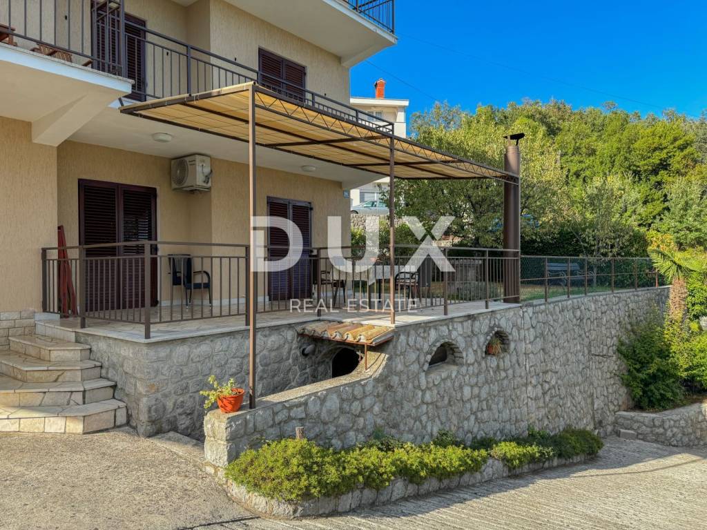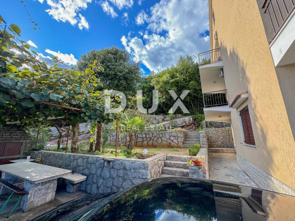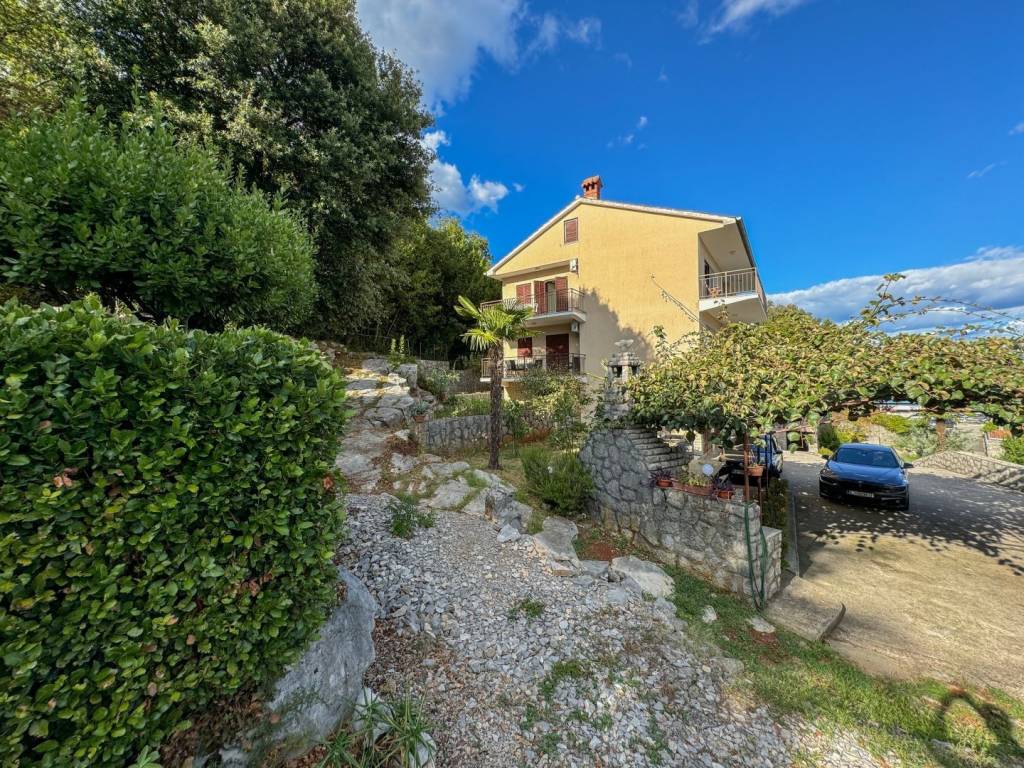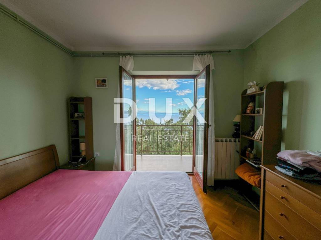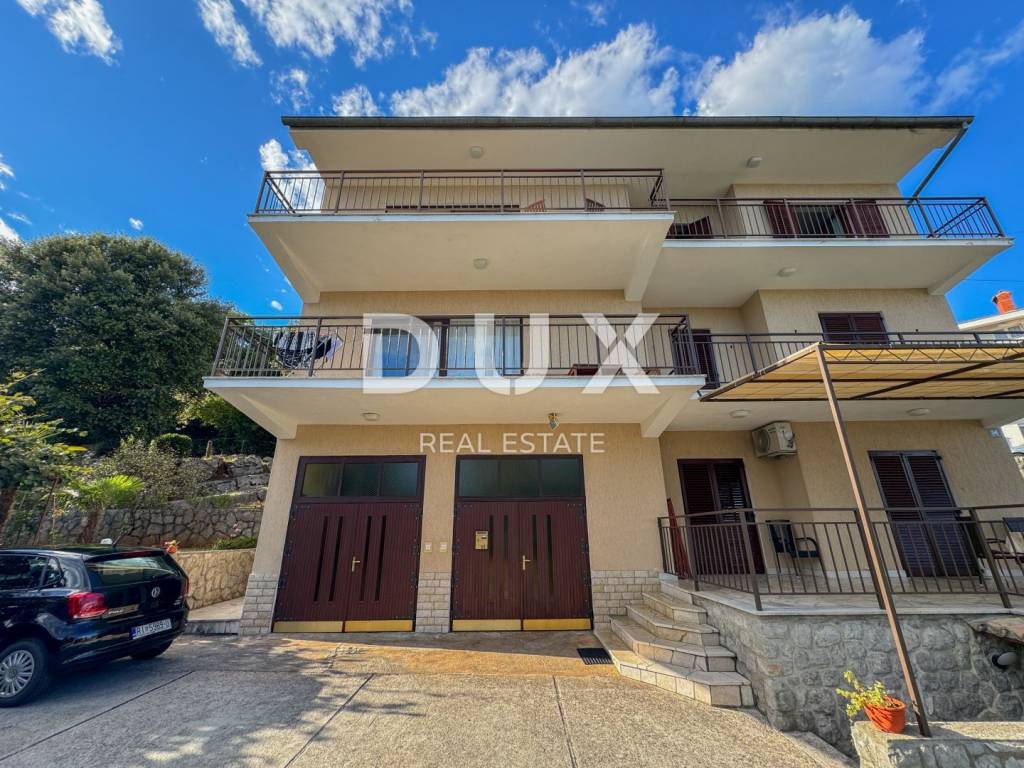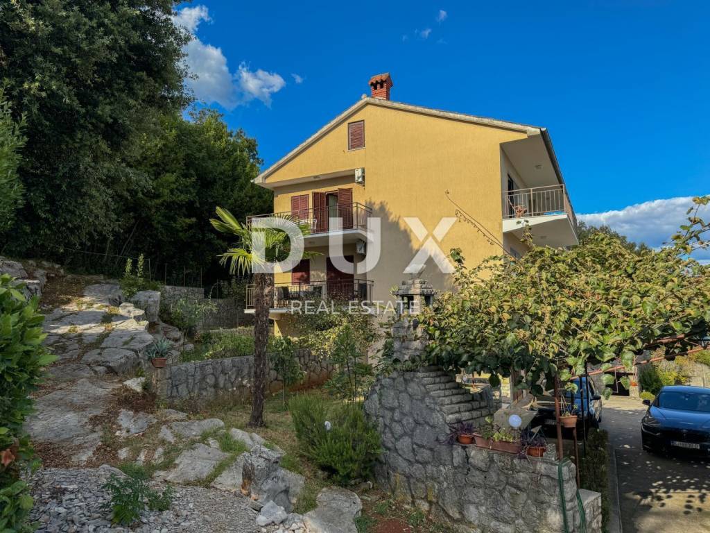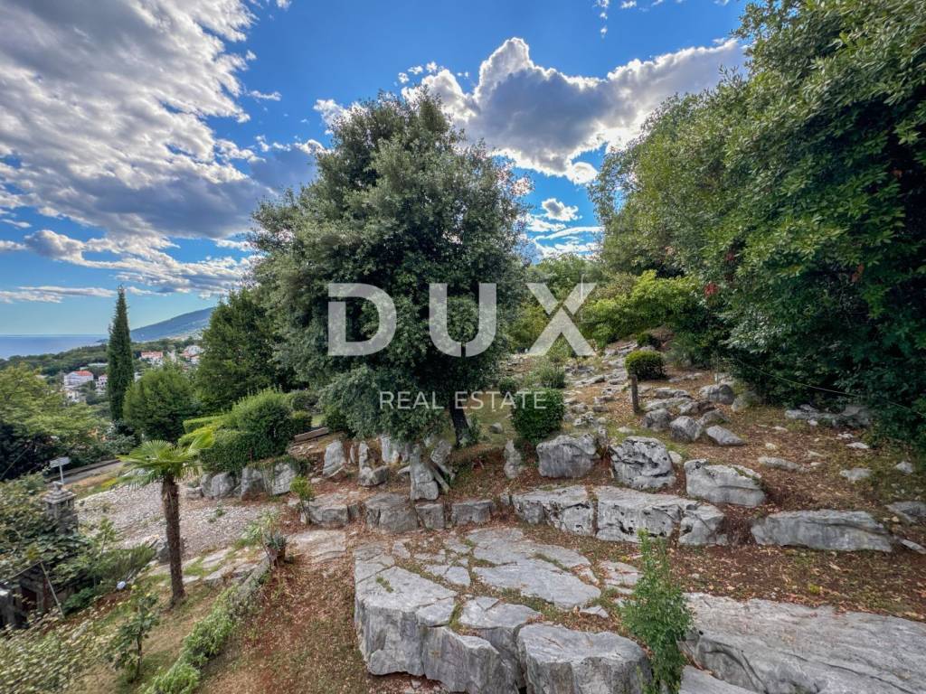 DUX offers a top opportunity on the Opatija market. It is a detached house on a plot of 1100 m2 located in a quiet street without traffic, in an elevated position offering a panoramic view of the sea, but only a one-minute drive to the beach. This is a really rare opportunity to buy a larger house in an extremely high-quality condition, with more than 300 m2 of useful living space. The elevated position of the property ensures privacy from neighbors and a view of the sea. The house consists of a ground floor (120m2) where there are two large garages with high ceilings, an apartment on the ground floor of 47m2 with a garden and a terrace. Furthermore, the house has two more floors, i.e. two large apartments of 104m2 + terrace of 40m2 (see floor plans). In the attic of the house there is an entire floor of the attic that can be converted into living space. (50% of the attic is standing). In addition, there are 3 larger taverns in the basement of the house. With this, we can summarize the house in more than 320m2 of living space, which can be converted into a minimum of 5, and maybe even 6 residential units with terraces and a view of the sea. It is important to point out that the two upper two floors, from each room, communicate with the outdoor terrace, which offers a fantastic view of the sea and the surrounding nature. Also, this house with a superb garden borders the forest or agricultural land at the back, so there will be no construction in that area. The approach to the house is simple and high-quality, surrounded by concrete walls and greenery. In order to valorize the true value of this house, it is only necessary to put a new facade, new carpentry, a new fence on the terrace, and refresh the interior space as desired. A large private garden guarantees the construction of a swimming pool, landscaping to your own taste. This is currently the only house in Ičići of this size and potential for this money. In addition to the house, there is the possibility of buying land next to the house of 500m2, where with a little effort, the future owner can get another building site next to the house! An investment opportunity for the right buyer, who will recognize the value. The house is located 450 meters from the sea as the crow flies, and it takes 7 minutes to walk downhill. It only takes one minute to reach Ičići beach by car - it takes 5 minutes to drive to the center of Opatija. It is a perfect and unique opportunity to buy a house suitable for decorating with the aim of a comfortable life, but also as an investment property.