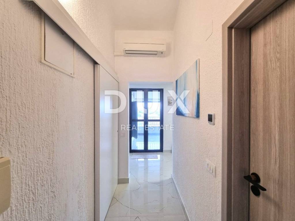 Embark on the discovery of supreme comfort and elegance in this beautiful apartment located on the outskirts of Vrsar, a magical town rich in history and enchanting beauty. With its 77m2 of space, this apartment on the second floor will treat you to an excellent arrangement of rooms that provides a luxurious and comfortable living space. Every corner of the apartment exudes sophisticated charm, starting with the elegant entrance area that invites you into its world of elegance and comfort. A separate kitchen with a dining room offers space for preparing delicious meals, while the spacious living room provides an ideal place for relaxation and socializing. In addition, the apartment consists of two bedrooms, one of which has its own bathroom, the apartment also has a practical pantry that will meet your needs for additional storage space. The special charm of this apartment is the wonderful covered terrace with an unforgettable view of the sea and picturesque Vrsar, providing you with the perfect place to enjoy your morning coffee or relax while enjoying the sunset over the horizon. The apartment was completely renovated in 2024 and equipped with new furniture, which means that you will enjoy modern design and top quality materials. High-quality air conditioners of the Toshiba brand ensure a pleasant temperature throughout the year, while the underfloor heating installed in the ceramic part of the apartment further contributes to your comfort. Aluminum sheds and mosquito nets have been installed on the apartment. The property is neat and unencumbered. This apartment in Vrsar represents the perfect opportunity to live in harmony with nature and close to the sea, providing you with the perfect combination of comfort, elegance and a beautiful ambience to enjoy life at the highest level.