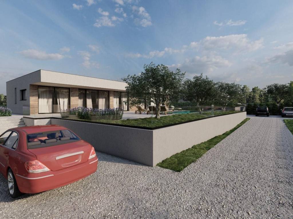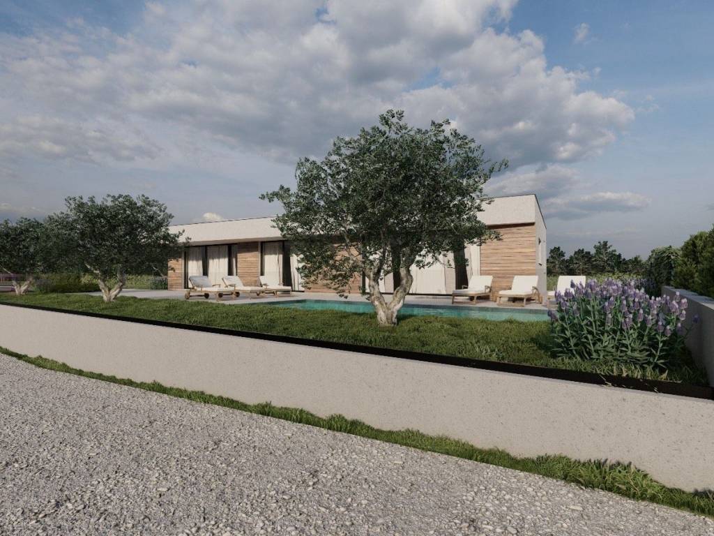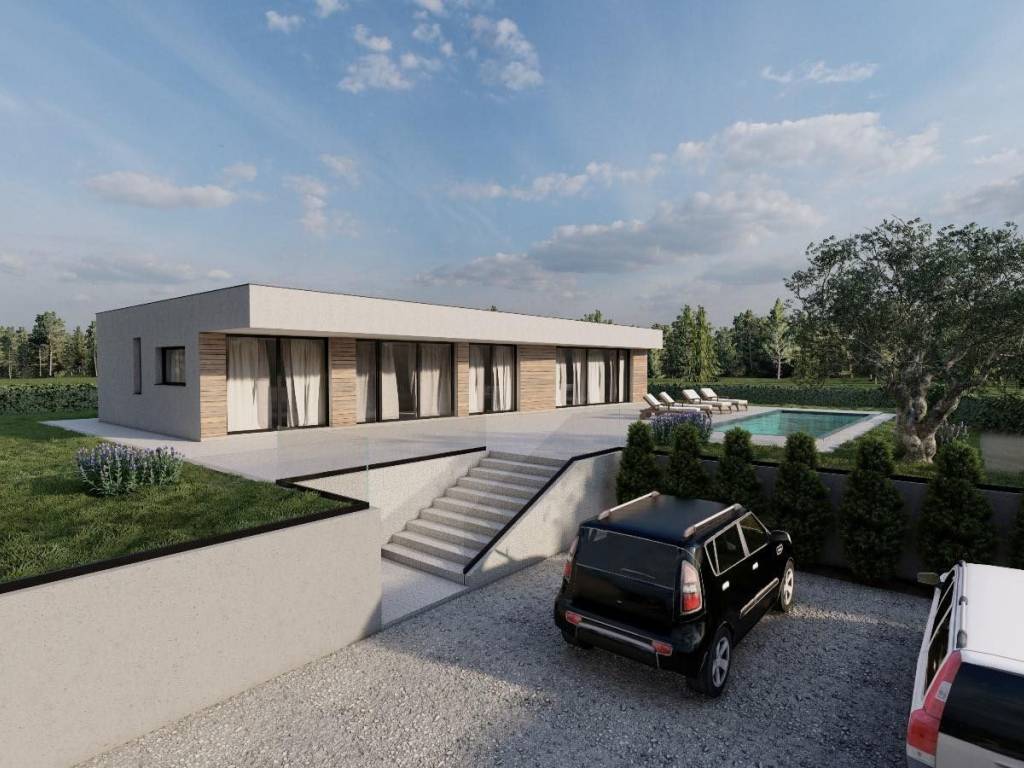 In the vicinity of the town of Labin, a spacious modern house with swimming pool is for sale.