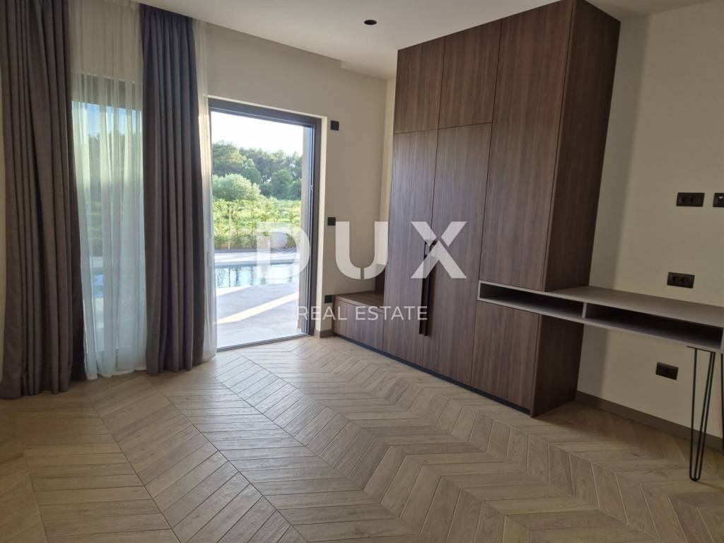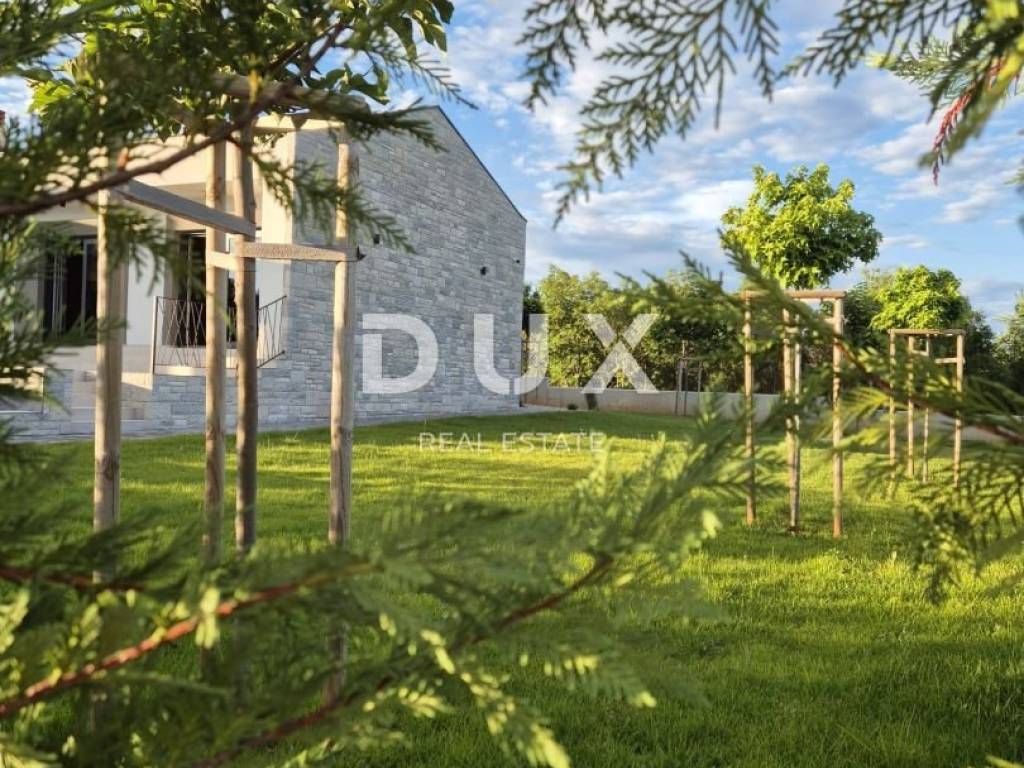 We proudly present this high-quality and valuable luxury one-story house, built at the beginning of 2024. It is located in the immediate vicinity of the unmissable town of Rovinj, as well as its facilities necessary for a safe and peaceful life all year round. By visiting the villa, we are sure that you will be charmed by the peace and high level of privacy it provides, as well as the quality of all the work performed. It is a villa worthy of your attention, which represents a perfect family home or an ideal property with a secure return on investment. DESCRIPTION OF THE VILLA: It consists of a total of 291m2 of living space, and every square meter is used to the maximum with a focus on simplicity and maximum comfort. As soon as we enter the villa, we are first greeted by a graceful lobby with a space intended for a wardrobe, which also divides the villa space into a living area and a bedroom, i.e. the private part of the villa. The living space is designed according to the "open space" system, without dividing walls, and where there is a larger and comfortable living room, then a spacious dining room sufficient for the whole family, and a modern and fully equipped kitchen. The space is decorated with custom-made wardrobes and furniture exclusively for this villa, and we are sure that you will be delighted by the direct communication between the interior of the villa and the outside landscaped area of the garden with the help of larger sliding glass walls. Rich amounts of natural light penetrates the space through the same glass walls, which makes the stay in the villa unique. In the more private part of the villa, there is a guest bathroom, as well as three comfortable bedrooms, each of which has its own bathroom and private access to the garden with a pool. DESCRIPTION OF THE GROUND FLOOR; This villa is located on a spacious, landscaped and fenced garden of 1180m2. By accessing the garden through a movable electric gate with sensors, there are 6 comfortable parking spaces for your tin pets, two of which are covered. The central part of the rear part of the garden is occupied by a 32 m2 overflow pool, perfect for entertaining and relaxing after an active day. Next to the pool there is a beach with a sunbathing area, as well as a covered terrace of the villa with a summer kitchen and space for dining furniture. The rest of the garden is decorated in a beautiful Mediterranean style with numerous plants, which make your stay in the open air more pleasant with various colors of flowers and pleasant scents of plants. The entire property is fenced and offers its owners the maximum level of privacy and peace. The villa is thus surrounded by almost untouched nature, without neighbors. ADDITIONAL INFORMATION: This villa was built according to the private wishes and needs of the owner, which means that every detail was taken care of during the construction, as well as during the furnishing of the villa. * Floor heating with a heat pump is installed throughout the villa. * In all rooms, except for the bathrooms, high-quality parquet suitable for underfloor heating has been installed. * The villa is sold partially furnished, with the furniture that is currently inside the villa, which was custom-made exclusively for this villa. * Air conditioners have been installed in each room, as well as a chimney with the option of installing a pellet or wood stove. * The property is in order, the villa has all the necessary documentation, there are no encumbrances. * The plot is surrounded by a concrete wall, next to which cypress trees have been planted, which have the function of maintaining privacy. * The garden has automatic irrigation. * Parking is for 6 cars, and 2 covered parking spaces. ** There is a possibility of buying a house + additional construction and agricultural plots located next to the house, in accordance with the agreement with the owner, which can certainly be interesting to a potential investor.** For any additional questions, required information or wish to organize an appointment to view the villa with its location feel free to contact us at any time.