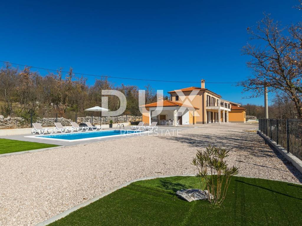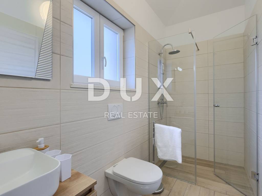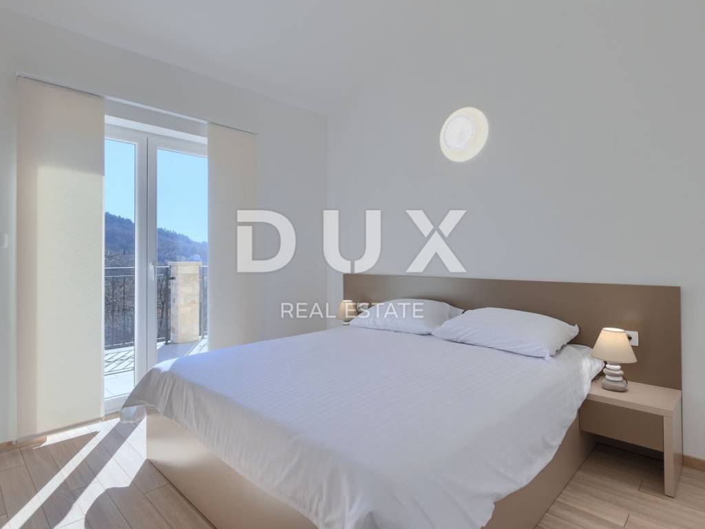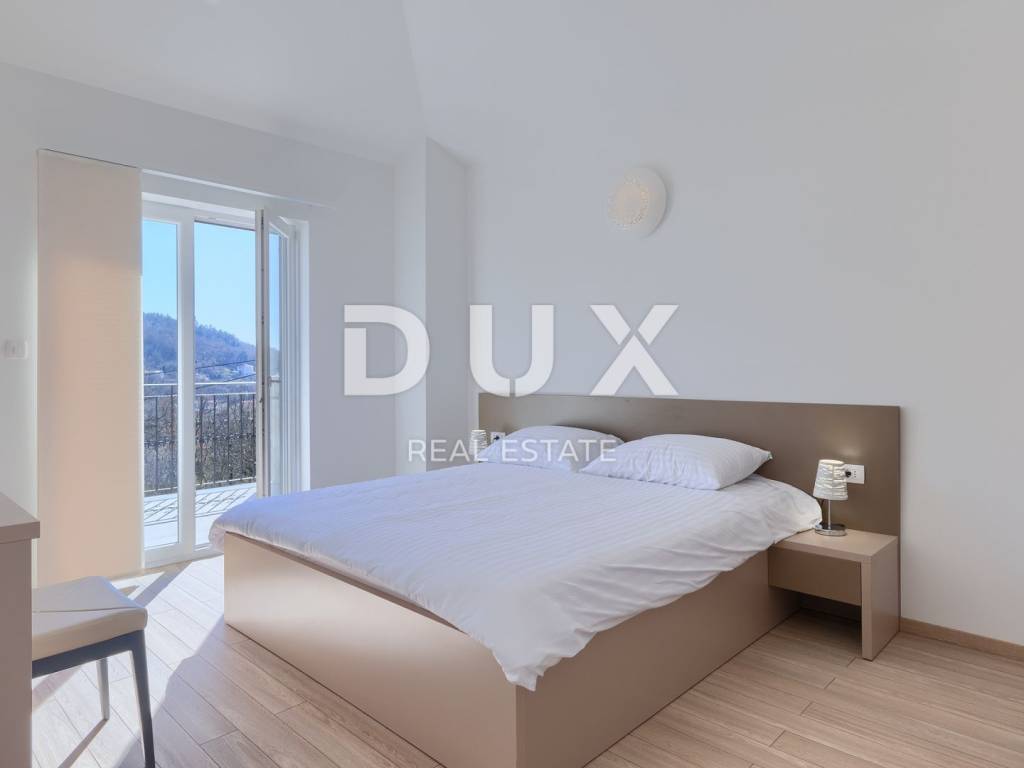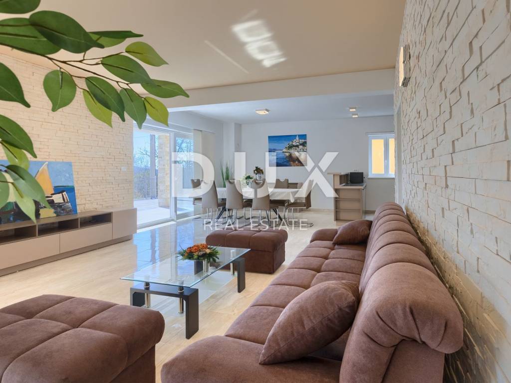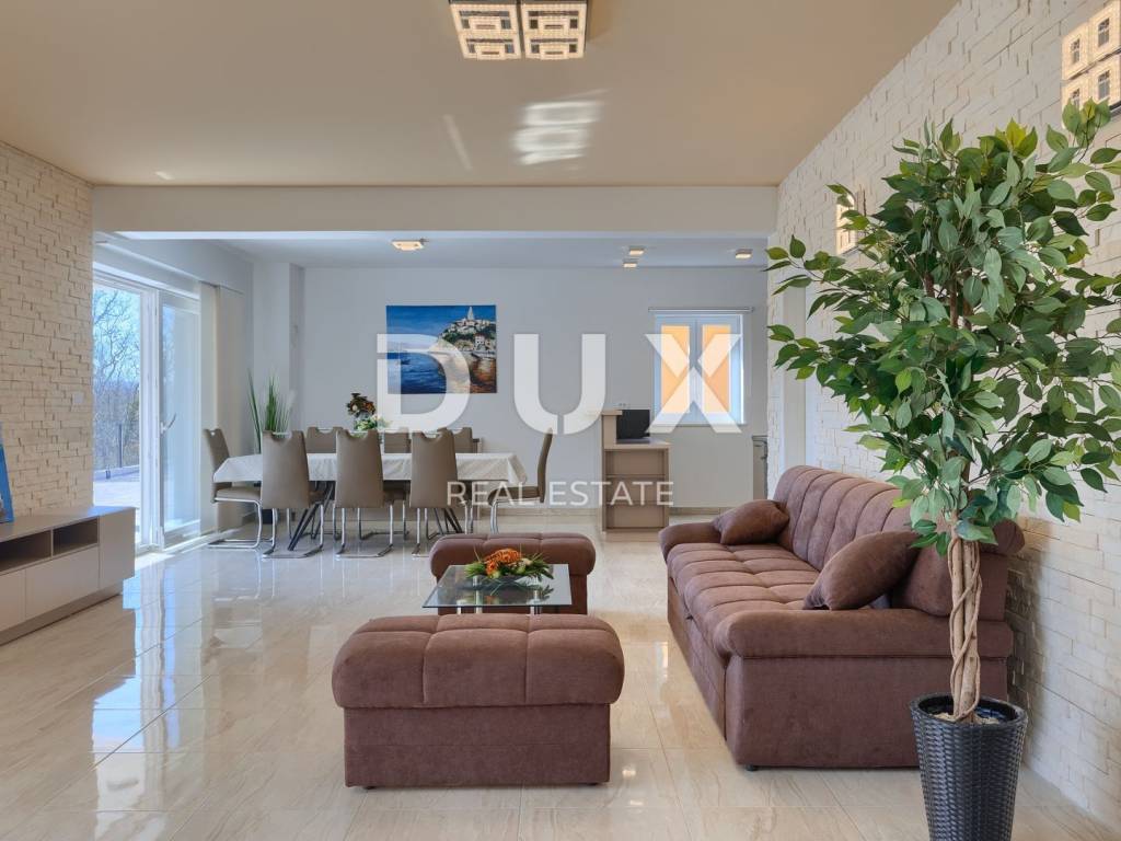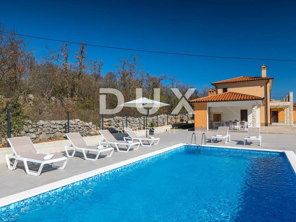 On the southeastern coast of Istria, at the place where the green hills meet the sea, five kilometers apart, there are two towns of similar size, but with different but mutually complementary characters - Labin and Rabac. Rabac, due to its white pebble beaches, rich Mediterranean vegetation and crystal clear sea, has been called the pearl of Kvarner. Once a small fishing village, today it is an attractive tourist destination that hides a wealth of cultural events in a network of colorful streets. The green surroundings of Rabac and the picturesque hinterland invite you to adventure, research and recreation throughout the year. Not far from Labin and Rabac, this beautiful detached house with a swimming pool and a massage tub is for sale. The house has an area of 208 m2 and its area is spread over the ground floor and first floor. It consists of a two-story apartment with an area of 165 m2, which consists of three bedrooms, three bathrooms, a toilet, a large living room with a dining room and kitchen, and terraces on the lower and upper floors. The house also has an additional apartment on the ground floor of 43 m2, 1 bedroom + bathroom. The house is air-conditioned, equipped with underfloor heating and fully furnished, and is being sold as such. On the plot of 1638 m2, there is a swimming pool of 38 m2, a summer kitchen of 35 m2 with a barbecue and sanitary facilities, and a children's playground. The entire lot is fenced with drywall and an internal net with enough covered parking spaces for several cars and automatic patio doors. This beautiful luxury property will satisfy even the most demanding, and the location will enchant you. OPPORTUNITY!