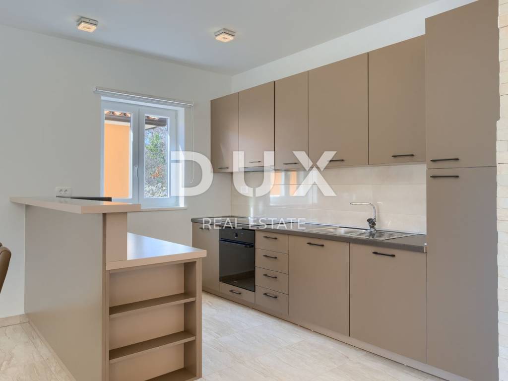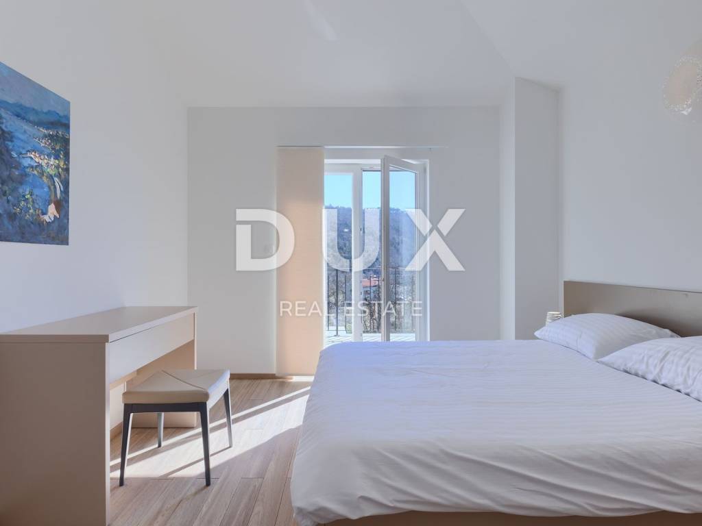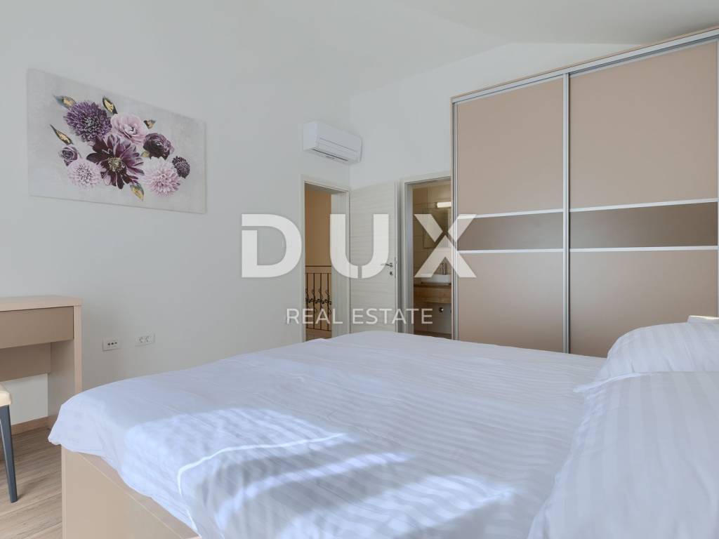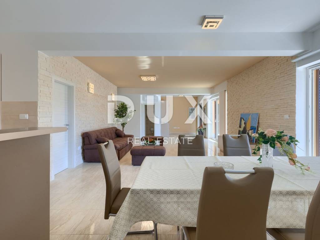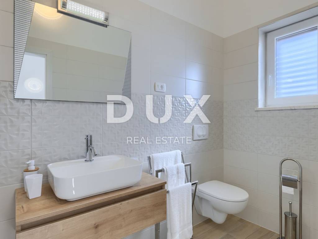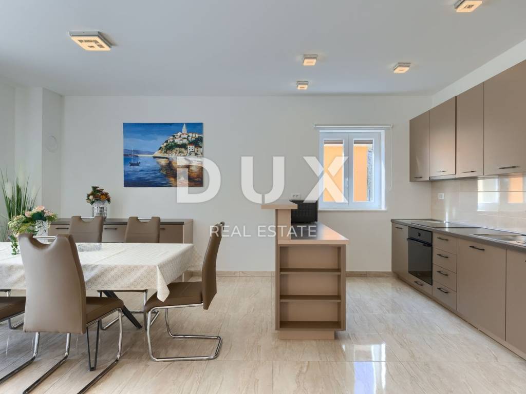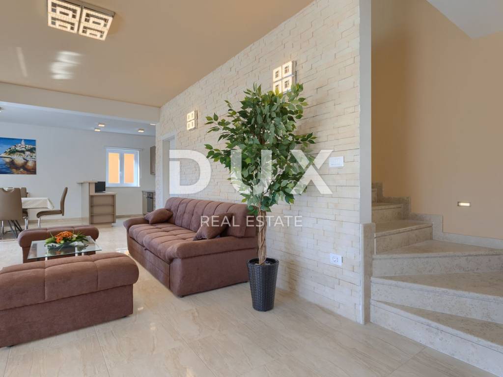 On the southeastern coast of Istria, at the place where the green hills meet the sea, five kilometers apart, there are two towns of similar size, but with different but mutually complementary characters - Labin and Rabac. Rabac, due to its white pebble beaches, rich Mediterranean vegetation and crystal clear sea, has been called the pearl of Kvarner. Once a small fishing village, today it is an attractive tourist destination that hides a wealth of cultural events in a network of colorful streets. The green surroundings of Rabac and the picturesque hinterland invite you to adventure, research and recreation throughout the year. Not far from Labin and Rabac, this beautiful detached house with a swimming pool and a massage tub is for sale. The house has an area of 208 m2 and its area is spread over the ground floor and first floor. It consists of a two-story apartment with an area of 165 m2, which consists of three bedrooms, three bathrooms, a toilet, a large living room with a dining room and kitchen, and terraces on the lower and upper floors. The house also has an additional apartment on the ground floor of 43 m2, 1 bedroom + bathroom. The house is air-conditioned, equipped with underfloor heating and fully furnished, and is being sold as such. On the plot of 1638 m2, there is a swimming pool of 38 m2, a summer kitchen of 35 m2 with a barbecue and sanitary facilities, and a children's playground. The entire lot is fenced with drywall and an internal net with enough covered parking spaces for several cars and automatic patio doors. This beautiful luxury property will satisfy even the most demanding, and the location will enchant you. OPPORTUNITY!