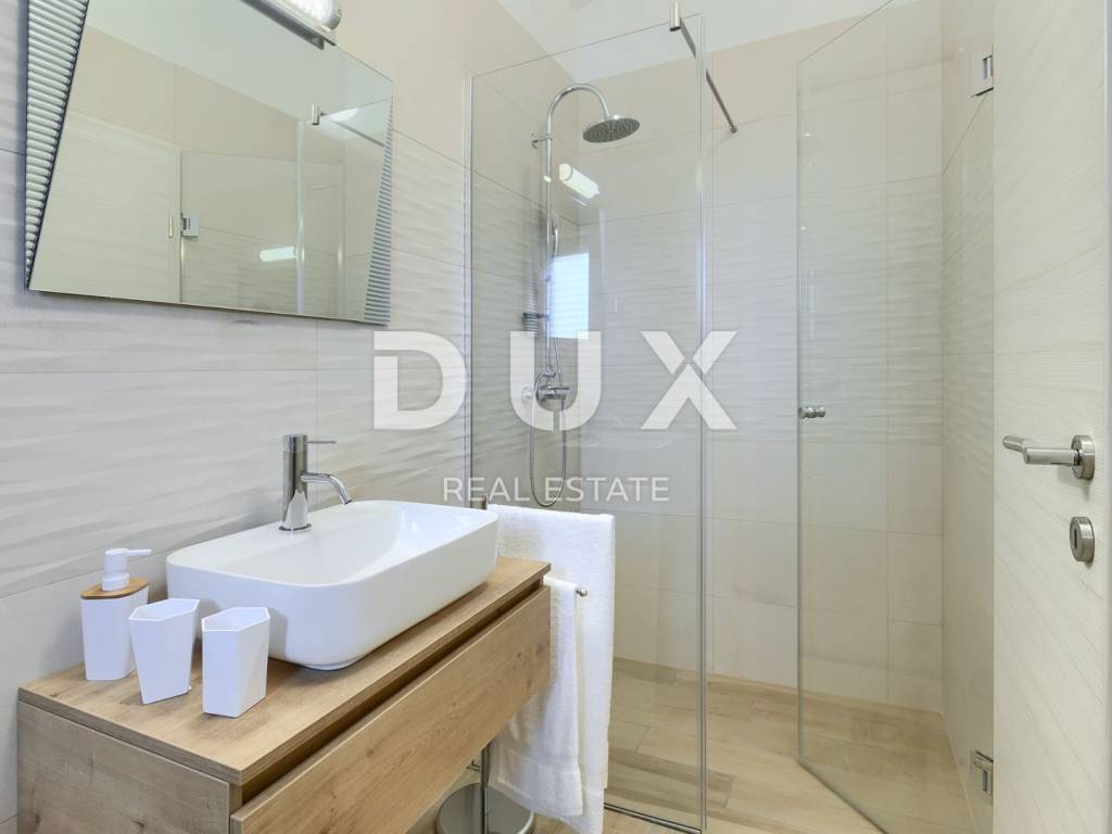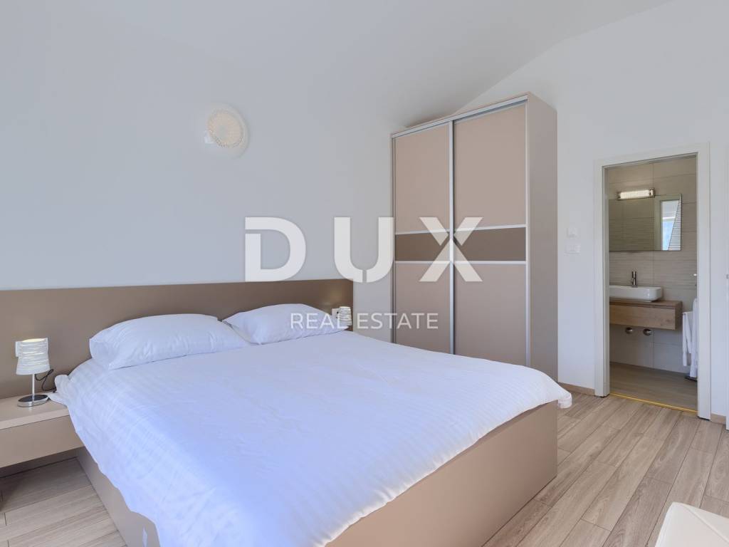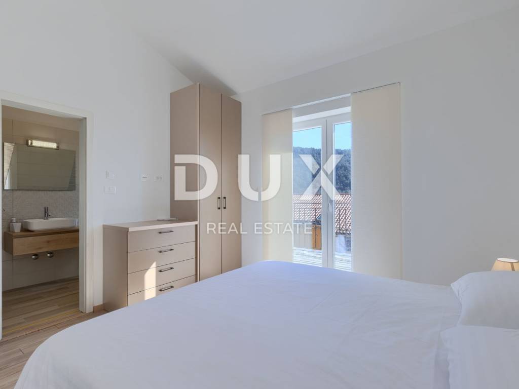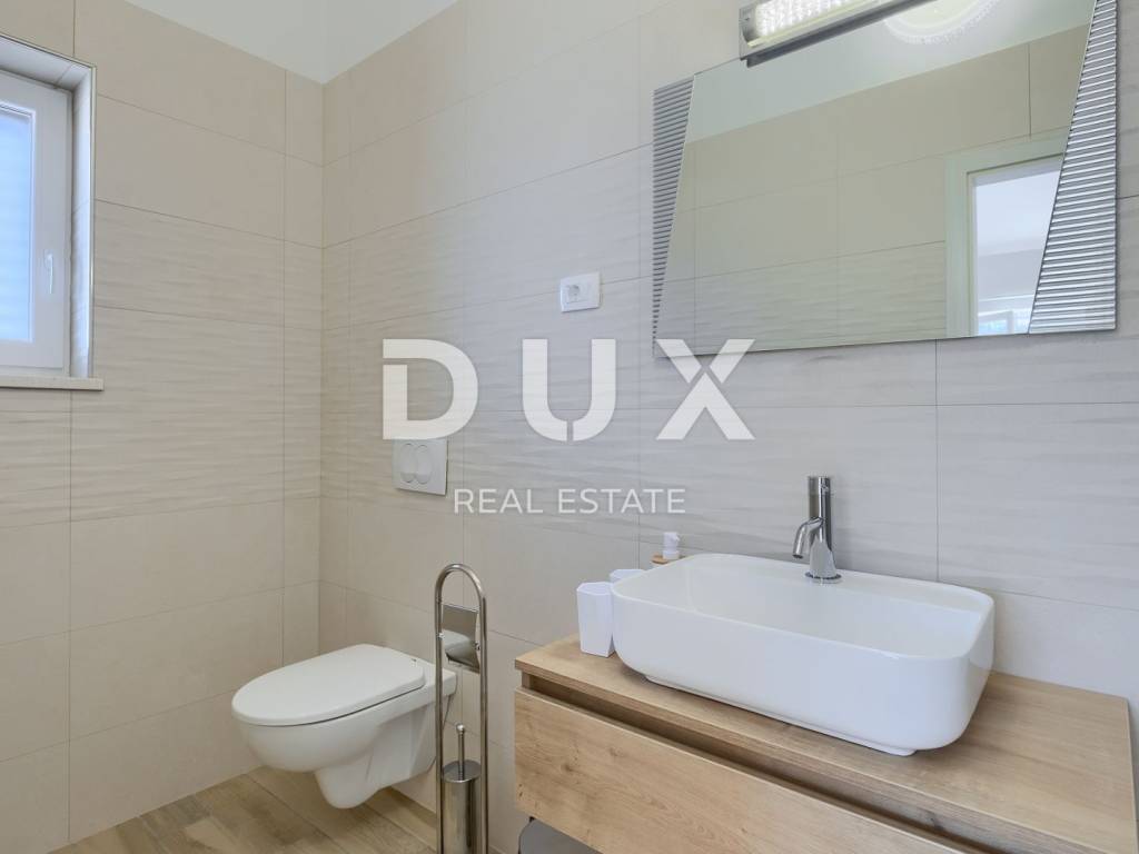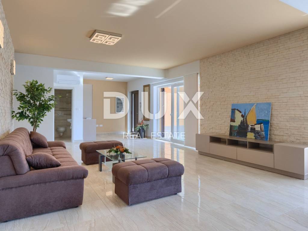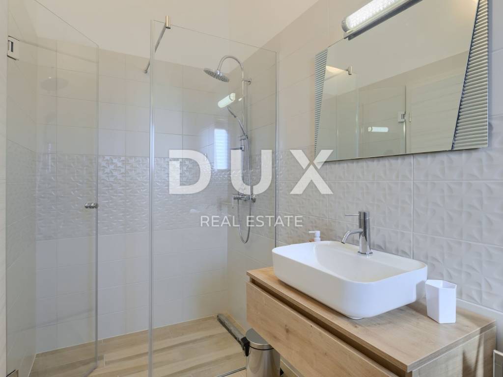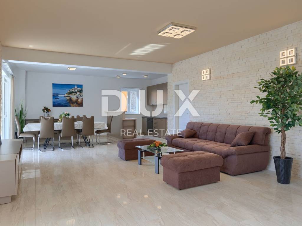 On the southeastern coast of Istria, at the place where the green hills meet the sea, five kilometers apart, there are two towns of similar size, but with different but mutually complementary characters - Labin and Rabac. Rabac, due to its white pebble beaches, rich Mediterranean vegetation and crystal clear sea, has been called the pearl of Kvarner. Once a small fishing village, today it is an attractive tourist destination that hides a wealth of cultural events in a network of colorful streets. The green surroundings of Rabac and the picturesque hinterland invite you to adventure, research and recreation throughout the year. Not far from Labin and Rabac, this beautiful detached house with a swimming pool and a massage tub is for sale. The house has an area of 208 m2 and its area is spread over the ground floor and first floor. It consists of a two-story apartment with an area of 165 m2, which consists of three bedrooms, three bathrooms, a toilet, a large living room with a dining room and kitchen, and terraces on the lower and upper floors. The house also has an additional apartment on the ground floor of 43 m2, 1 bedroom + bathroom. The house is air-conditioned, equipped with underfloor heating and fully furnished, and is being sold as such. On the plot of 1638 m2, there is a swimming pool of 38 m2, a summer kitchen of 35 m2 with a barbecue and sanitary facilities, and a children's playground. The entire lot is fenced with drywall and an internal net with enough covered parking spaces for several cars and automatic patio doors. This beautiful luxury property will satisfy even the most demanding, and the location will enchant you. OPPORTUNITY!