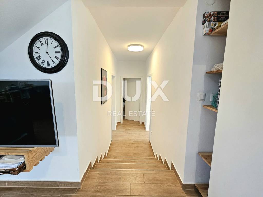 We proudly present this highly luxurious and spacious Penthouse located on the 1st floor of a smaller building, which consists of only 3 residential units. It is a building built in 2020, and located in charming Pomer, only 500m from well-kept beaches and promenades ideal for rest and relaxation after an active day. This spacious apartment offers its future owners the unique experience of staying in a quiet location, without crowds and noise, and we are sure that it will charm you with its smart organization of the interior space, as well as the quality of all the work performed. DESCRIPTION OF THE APARTMENT: It is an apartment that consists of a total of 123.95m2, of which NET 109.49m2 refers to the living space of the apartment itself, then NET 9.46m2 (calculated according to the coefficient) uncovered terrace, and two parking spaces on garden of the building of a total of 5m2 (calculated according to the coefficient). The apartment is accessed by a separate external staircase from the building's parking lot, and at the very entrance to the apartment there is a comfortable lobby with a space for a wardrobe, which then leads us into the living room of the "open space" concept apartment without partition walls. Where there is a spacious living room, then a larger dining room sufficient for the whole family, and a slightly separated modern and equipped kitchen perfect for preparing your favorite delicacies. A larger guest bathroom is located in the already mentioned lobby, which is also used as a laundry room. What we must highlight are the high ceilings that adorn the living area of the apartment and add to the feeling of airiness and brightness of the space. In addition to the living room, there is also a larger covered terrace, which can be accessed with the help of a sliding glass wall. The same terrace is perfect for setting up an additional dining table, where you have the opportunity to host 8 to 10 people. Separated by a corridor, there are 3 spacious bedrooms, each of which has its own bathroom with shower. In addition to the above, each bedroom has its own air conditioner. Access to the second floor of the apartment also extends from the living room, along the internal staircase, where we can find an open and spacious terrace with a view of the sea, the rest of the village and the slightly hilly landscape. This terrace is perfect for entertaining friends and family, and it also has an already implemented infrastructure for setting up a summer kitchen. Equally, you have the opportunity to install a Jacuzzi on the terrace, as well as additional content, such as; outdoor covered summer kitchens or sunbathing areas. In addition, the same terrace can also be covered in order to repurpose the space according to your needs and wishes. ADDITIONAL INFORMATION: * The apartment is sold fully furnished, as can be seen in the pictures. * Each room of the apartment has an air conditioner with the possibility of cooling and heating. In addition, the first phase of central heating was implemented in the apartment, as well as the fact that the apartment has its own chimney with the possibility of setting up a pellet or wood stove. * The apartment also has solar panels installed on the roof of the building, which are used for water heating. * The apartment also has an external storage room, as well as an additional technical room in which there is a hot water boiler, which is also an additional storage space. * The apartment has 2 marked parking spaces in the private garden, which can be accessed with the help of an electric sliding gate. * High-quality facade insulation of 10 cm was installed. * High-quality PVC joinery was installed. * The ownership of the apartment is in order, the building has all the necessary documentation, the apartments are shared, owner 1/1, no encumbrances, possibility of buying on credit. For any questions, necessary information or wish to organize an appointment to view the apartment and its location, please feel free to contact us at any time.