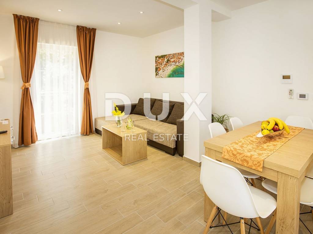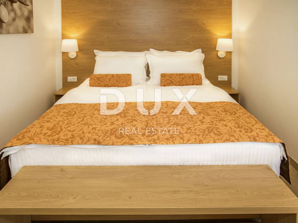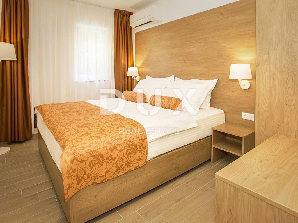 Newly renovated villa with seven apartments, of which five are one-bedroom and two two-bedroom. Everything is superbly decorated with modern furniture, quality construction and provides an opportunity for a pleasant holiday. The garden is also beautifully decorated, surrounded by greenery, it has a swimming pool and sun deck, and barbecue. Parking for several cars is provided in the yard. Beautiful property that provides a great opportunity for tourism. Distance from the sea 500 m.