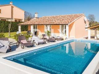 Known for the knightly game of the Ring Race, which is traditionally held in August, continuously since 1976, and traces its roots back to 1696. Barban is also known for the Festival of figs and fig trees and other smaller events that have developed in the last ten years since the rapid development of rural tourism. Barban is also proud of well-preserved architectural buildings from the Baroque and Gothic periods, frescoes and Glagolitic inscriptions. It is a place where more and more stone and modern villas are being built in recent times. This beautiful villa with a swimming pool and a summer kitchen is located in a quiet village. The house is spread over two floors. On the ground floor there is a large kitchen with dining room and living room, and two bedrooms, each with its own bathroom. The living room is decorated with a beautiful fireplace. The internal stairs lead to the first floor, which consists of a large veranda with glass walls, which serves as a living room and three bedrooms, each with its own bathroom. The villa is for rent and is categorized with 4 stars, so it can provide the future owner with additional income as well as a carefree vacation or a peaceful and comfortable life. The fenced yard offers peace and privacy, and it covers 350 m2. There is also a swimming pool for cooling off on hot summer days, as well as a summer kitchen with a toilet and an outdoor grill. Dear clients, the agency commission is charged in accordance with the General Terms and Conditions. www.dux-nekretnine.hr/opci-uvjeti-poslovanja