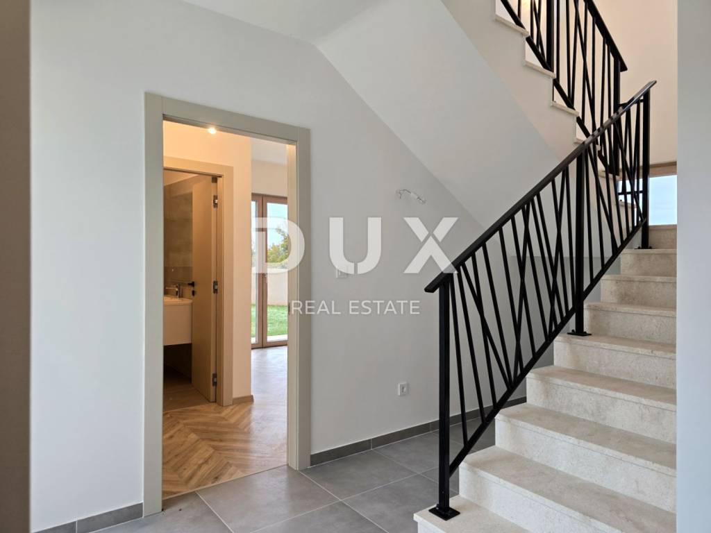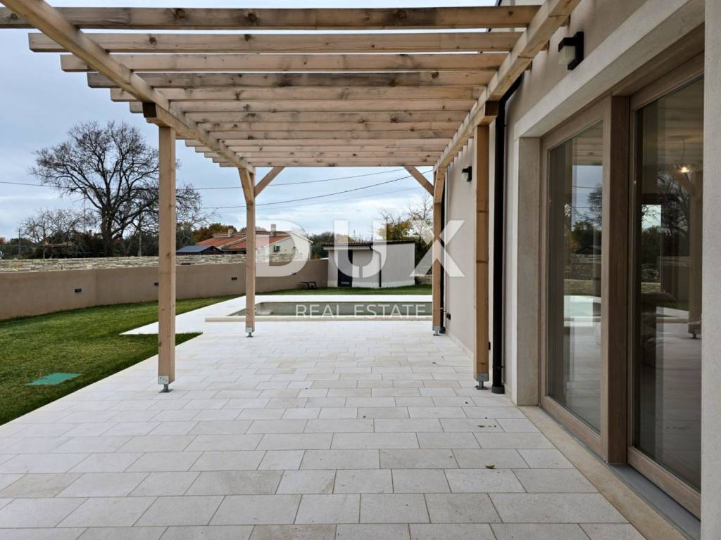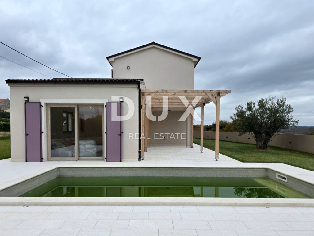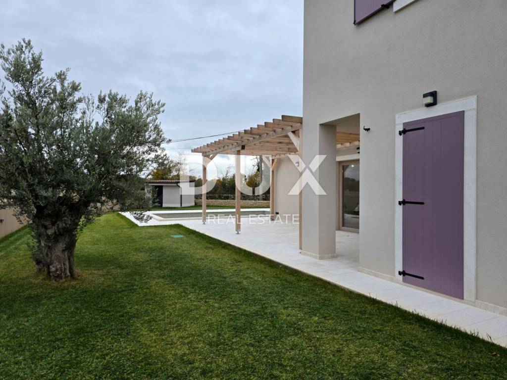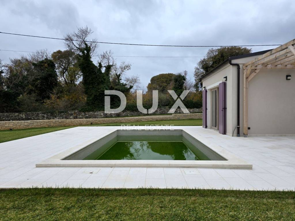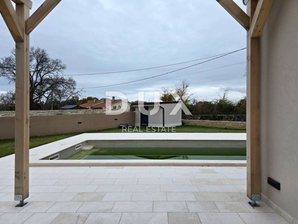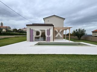 Marčana is a municipality in the southeast of the Istrian peninsula. It is located about 12 km northeast of Pula, the largest city in Istria. It is known as a destination for the sea, holidays, wine and olive oil. It is a culturally rich settlement with crystal clear sea and an almost unreal landscape consisting of gorgeous bays and green peninsulas. Its 36 kilometers of coastline is the least urbanized coastal zone in Istria. Marčana and its fertile green fields, with gentle hills that descend to hidden rocky coves and secluded villages and towns are an undiscovered treasure of the eastern coast of Istria. In this landscape of idyllic and gentle views, a house with a swimming pool is for sale. The property represents a harmony of needs, functions, space, construction and beauty. It is located in a gentle neighborhood, surrounded by nature, family homes and vacation homes, offering the perfect balance of rural surroundings and proximity to the sea and urban amenities. In addition to the location that provides complete comfort and peace, the property is also distinguished by the quality of construction, which guarantees long-term satisfaction and quality of housing. The house of timeless architecture blends in shape and color with the settlement and the landscape. It was conceived as one residential unit that extends over two floors of a functional floor plan. The ground floor consists of an open-concept space that unites the kitchen, dining room and living room with access to the pergola-covered terrace, a bedroom with its own bathroom, a guest toilet and a storage room. The first floor consists of an entrance hall with access to a spacious terrace, two bedrooms and a bathroom. The fenced garden is full of greenery, and the perfect harmony is rounded off by a heated pool of 24 m with a sun deck. The excellent location and spatial organization of the interior and exterior of this impeccable property provides an opportunity for a comfortable family life or an investment investment in a tourism rental business. Dear clients, the agency commission is charged in accordance with the General Business Conditions: www.dux-nekretnine.hr/opci-uvjeti-poslovanja