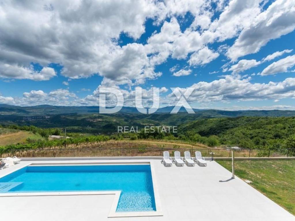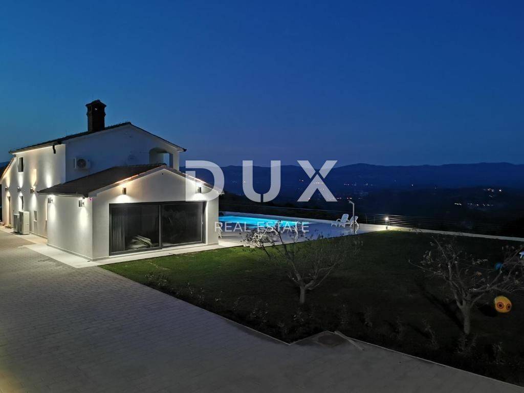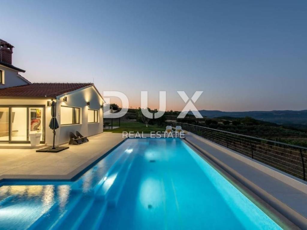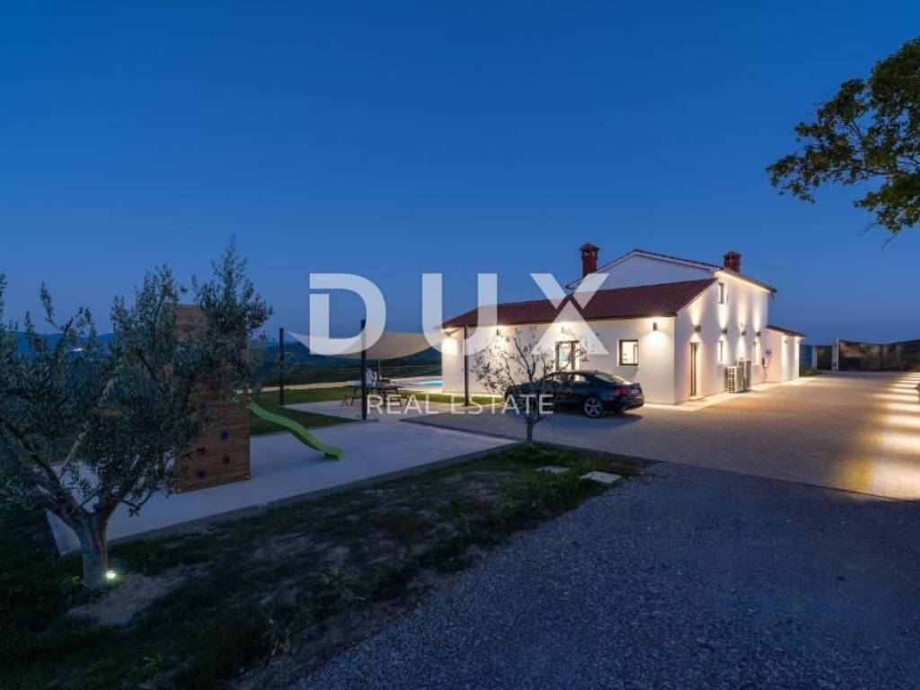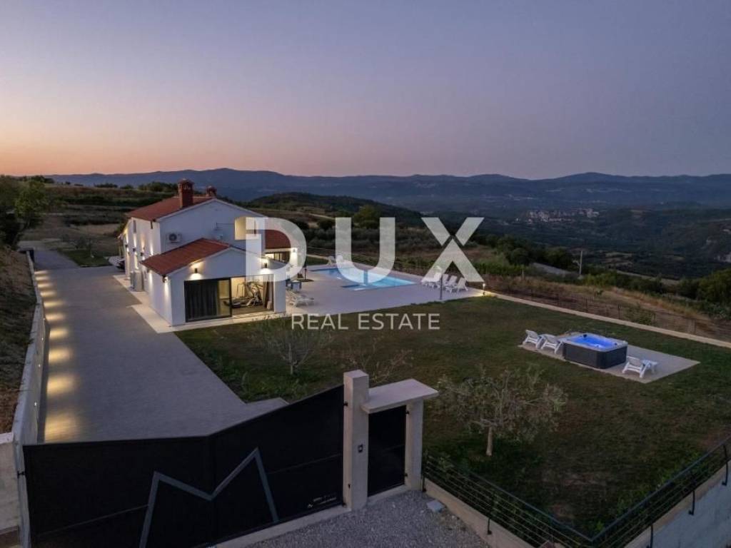 Buzet, a small town on a velvety hill, surrounded by mighty stone walls and seasoned with divine autochthonous Istrian gastronomy. It is widely known as the city of truffles, whose hunting grounds are located right in the forests of the Mirna River valley. One of the most valuable features of this region is certainly its untouched nature. Beautiful natural landscapes that merge coastal and mountain landscape with numerous hills and the valley of the Mirna river give rise to unique views. The area of Buzeština is located in the northernmost inland part of Istria, in the area between three large city centers: Rijeka, Trieste and Pula. The area is very diverse, from 10 m to over 1000 m above sea level. Buzet, together with the surrounding area, known as Buzeština, covers 165 km2. A villa with a spacious garden is for sale near Buzet on a clearing with a beautiful view. The villa consists of ground and first floors. On the ground floor there are even two living rooms with a beautiful view of nature and the pool, kitchen and dining room, toilet and gym. Upstairs there are 3 large bedrooms with bathrooms. The villa also has a charging station for electric cars, underfloor heating and cooling. The living room has a beautiful exit to the terrace and yard. In the fully fenced yard there is also a covered grill with a large table and a jacuzzi. Ideal property for tourist rental or luxurious family life.