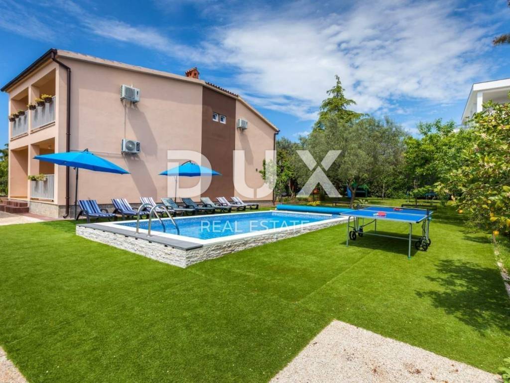 Fažana is a municipality on the west coast of Istria overlooking the Brijuni Islands. Fažana used to be a quiet fishing village, but today it is one of the most visited municipalities in Istria, with a rich gastronomic and entertainment offer. Beautiful beaches and kilometer-long promenades, enriched with natural beauty, Fažana offers a relaxing atmosphere. In this beautiful place, in a quiet location, there is a house for sale that extends over two floors. On the ground floor there is a hallway, a bathroom, a storage room, a kitchen with a dining room and a large open-concept living room that leads to a large covered terrace of 12 m2. The kitchen leads out to the rear part of the yard where there is a barbecue. Internal stairs connect the ground floor and the first floor of the house, where there are four bedrooms and two bathrooms. Two rooms have access to a covered terrace (12m2) with a view of the sea. There are mosquito nets on all windows and doors. In the yard there is a garage and space for two more parking spaces. A 32m2 (4x8m) swimming pool is currently under construction on the spacious garden, around which there will be a sunbathing area and landscaped garden. There is also the possibility of upgrading the facility. The owner allows the customer to choose the color of the facade. Considering the location and proximity to the sea and beautifully decorated beaches, the house can also be used as an investment for tourist purposes. Do not miss the opportunity, the property is worth your attention.