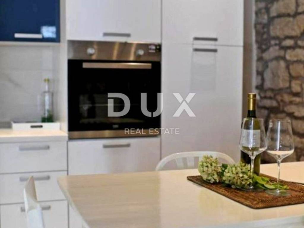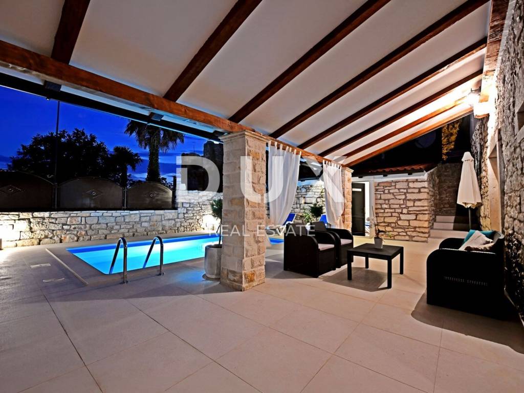 Sveti Lovreč is situated on a hill with a wonderful view of gentle fields, vineyards, olive groves and the sea in the distance. Sveti Lovreč is located in the middle of lush lavender fields in the western part of the Istrian peninsula, in the immediate hinterland of Vrsar, Poreč and Rovinj, and is one of the best preserved medieval fortified towns in Istria. The location of the small town on a gentle hill that dominates the area where as many as 22 settlements, villages and hamlets are scattered speaks of its significant role throughout history. Several deep bays stand out along the slightly indented western coast of Istria, of which the Lim Bay is partly part of the Municipality of Sveti Lovreč. The Lim Bay is a natural phenomenon of great scientific and aesthetic value; it was declared a special reserve in the sea. In the old town center of this picturesque town surrounded by gentle and idyllic views, a stone house with a swimming pool is for sale. Respecting the traditional autochthonous values and the architecture of the Istrian heritage, a true little paradise, i.e. a hedonistic corner with an elegantly and functionally decorated exterior and interior, was created from an old dilapidated stone Istrian house. The interior of the house is fully adapted to the modern lifestyle, and the living space is divided into the ground floor and first floor. On the ground floor there is a living room and a dining room with a kitchen and an exit to the porch with an open fireplace, while on the first floor there are two bedrooms, two bathrooms and a terrace with a view of the surroundings and all the way to the sea. The yard is fenced and landscaped. It contains a swimming pool with a sunbathing area and an auxiliary building in the function of storage and laundry. The exceptional location, structure and comfort make this property an ideal opportunity for a peaceful family life as well as an investment for the purpose of an already well-established tourist rental.