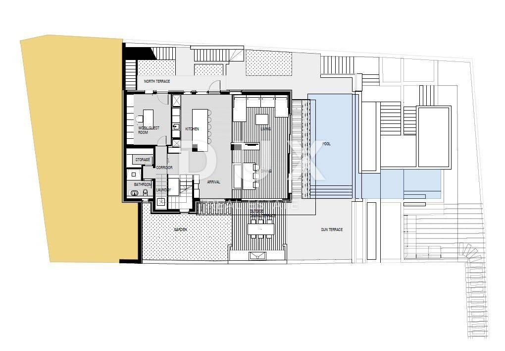 Smart Villa in Opatija - this modern luxury villa that we offer for sale is located in beautiful Opatija, only 200 m from the sea, marina and beach. Located on a cascading terrain, on a plot of 670 m, the villa offers an enchanting view of the sea and the Kvarner islands. The villa exudes elegance and a harmonious interior and exterior. The living area of the villa is 300m2 and is spread over three floors. The decoration of the villa is divided into 3 zones: entertainment zone, day zone and lounge zone. This modern luxury villa that we offer for sale is located in beautiful Opatija, only 200 m away from the sea and the beach. Located on a cascading terrain, on a plot of 670 m, the villa offers an enchanting view of the sea and the Kvarner islands. The villa exudes elegance and a harmonious interior and exterior. Characteristics of the smart villa: The living area is located on the ground and first floor. The ground floor consists of a living room, a kitchen, a dining room arranged according to the open space concept, a storage room and a bathroom with a shower. There is also one additional room that can be a study or an additional bedroom. The living room is dominated by a large glass wall that can be opened electrically, which provides a panoramic view from the living room. The outer part of the ground floor is dominated by a 30 m2 swimming pool with a counter-current swimming system and a sunbathing area. There is also a summer kitchen with outdoor dining. A large pool on the ground floor and a smaller pool in the basement are connected by a waterfall created by a system of pool technology that connects the two pools, which allows water to constantly circulate in the waterfall. On the first floor there is a master bedroom with a bathroom and a terrace. There are two more bedrooms, each with its own bathroom, and one has its own terrace. At the top of the villa there is a lounge area with a whirlpool, which is thermally sealed with glass walls and can be used both in summer and winter. A designer fireplace gives a special atmosphere especially in the winter months. In the summer months, this space can be an open terrace equipped with comfortable armchairs and a sofa. In that zone there is also a separate bathroom, a small kitchen, a bar and a sun deck. In the basement of the villa, there is an additional space equipped with an audio-visual system and a heating-cooling system that can be used as an entertainment area, a cinema hall, a wine cellar or a storage room. The villa has an integrated KNX Smart home system. Smart houses offer the following advantages compared to conventional homes: energy savings, remote management and control of space, security, increase in real estate value, comfort and lifestyle. All systems of the villa (heating-cooling, electrical system, audio-visual system, sensor alarm, video surveillance, smart house system, which systems cover all the rooms of the villa) are integrated into one control source; KNX system. The villa's equipment and installations will be from renowned Italian manufacturers. So the doors will be Barausse, eletro system, lamps and other Groppi and Viabizzuno, tiles, showers, REXA bathtubs. The exterior joinery and glass walls will be Heroal. The villa has 4 parking spaces and a charging station for electric vehicles. They paid a lot of attention to the interior decoration of the villa, but also to the overall development of the construction project, paying attention to every detail. Thanks to the impressive equipment, in this smart villa everyone will find something for themselves, whether they are athletes, business people or movie and music lovers, because the future owner and his guests have all the necessary facilities for entertainment and relaxation from the fast pace of modern life. . The plot is completely surrounded by a stone wall that provides peace, intimacy and shelter from prying eyes. Certainly a beautiful property for a luxurious family life, but also suitable as an investment in the form of elite tourism. This property is 220m from the sea as the crow flies, or 650m on foot (7 min). Opatija: Opatija, a beautiful coastal town located on the Adriatic Sea, is a famous tourist destination for tourists from all over the world. The city is surrounded by beautiful nature, at the foot of the Učka mountain. Real estate in Opatija offers a priceless view of the sea and the surrounding islands of Krk and Cres. Opatija is surrounded by charming small towns with old houses located in narrow streets rich in history. The streets of the city of Opatija are made up of properties that stand out with their specific architecture and villas that date from the Habsburg period. A large selection of beaches, crystal clear sea and various tourist services are the key factors that make Opatija a perfect tourist destination recognized by neighboring countries as an excellent investment choice. Real estate prices in this area are rising, rental occupancy is excellent, which has resulted in a return on investment of 5% to 10% and attracting foreign investors.