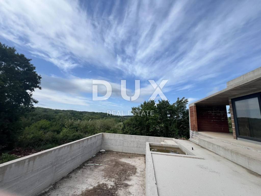 In the immediate vicinity of Motovun, a modern villa under construction is for sale in the Rohbau phase.